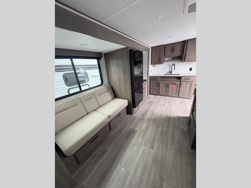 The customer-focused, quality-built Transcend Xplor travel trailers by Grand Design are your ticket to fun and adventure. You will appreciate the power tongue jack when it comes time to set up, as well as the all-in-one utility center and the detachable power cord with an LED light. These models include many outlets throughout, USB ports to charge your gadgets, and a JBL exterior speaker to listen to your favorite tunes. The interior of the Transcend Xplor will have you feeling right at home with upgraded residential furniture, residential countertops, residential cabinet doors, and the list goes on!