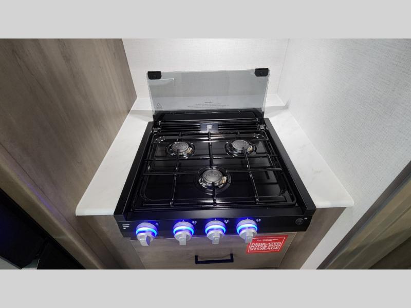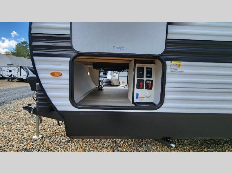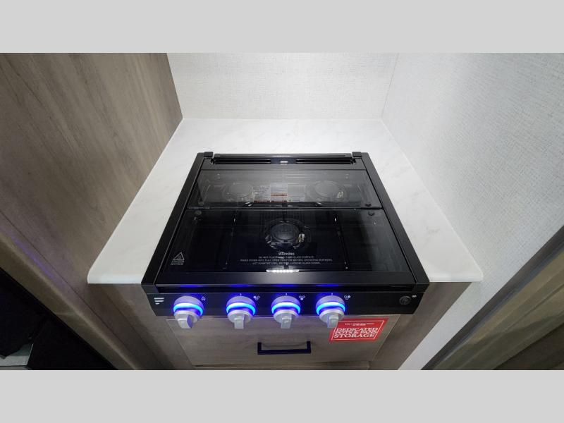 Power Package – Power awning with LED lights, power tongue jack, and solar prep make setup and boondocking easier than ever.