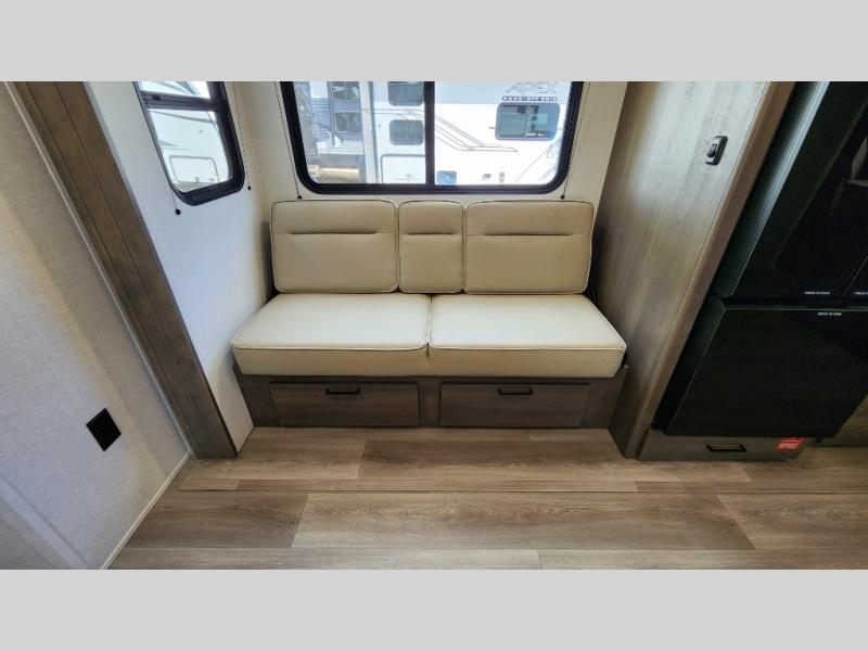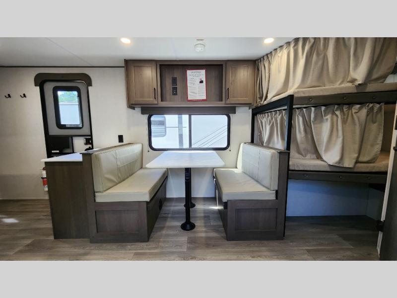 Convertible Living Area – Booth dinette and jackknife sofa offer extra sleeping options and a comfortable space to relax or dine.
