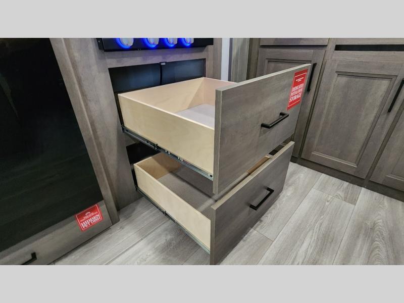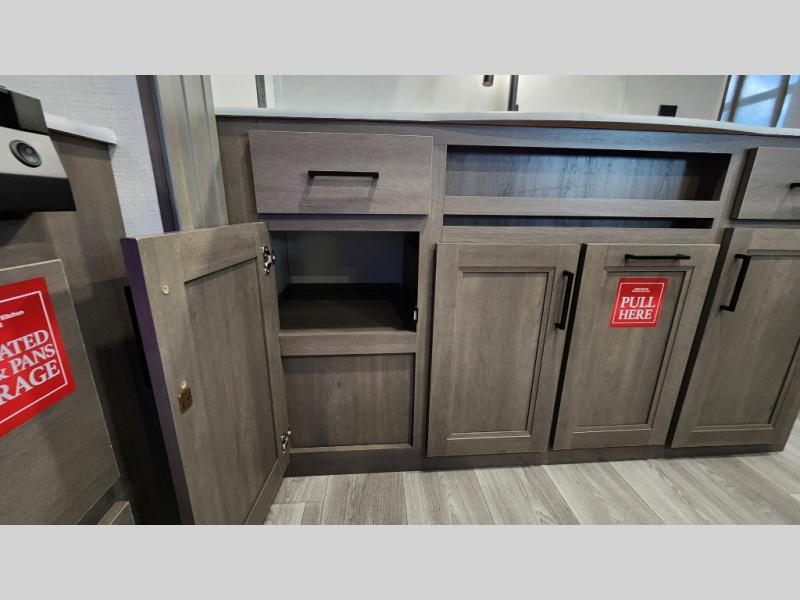 Massive Storage – Interior cabinets, under-bed storage, exterior pass-through compartments, and pantry space ensure you can bring it all.