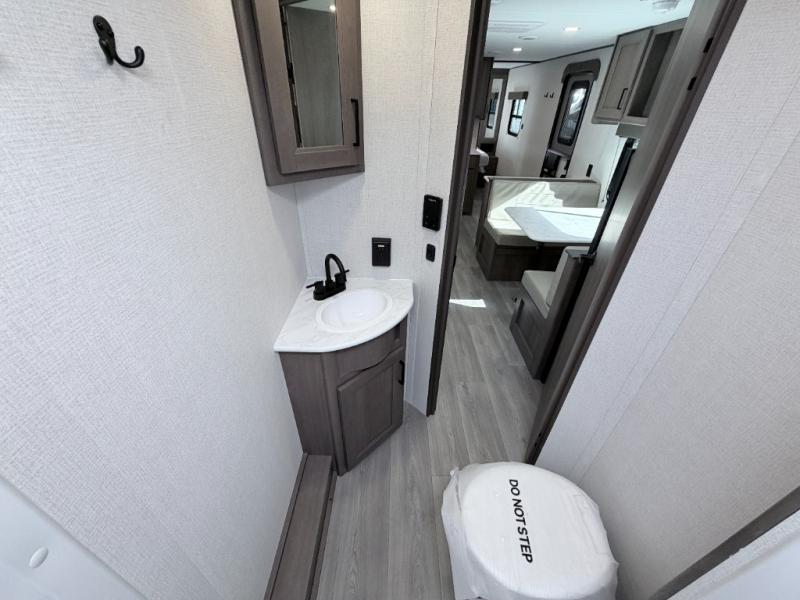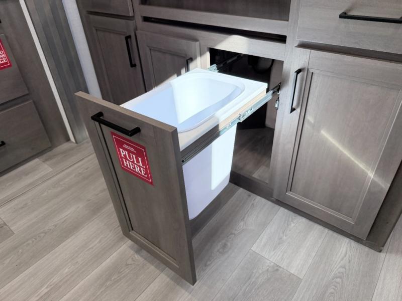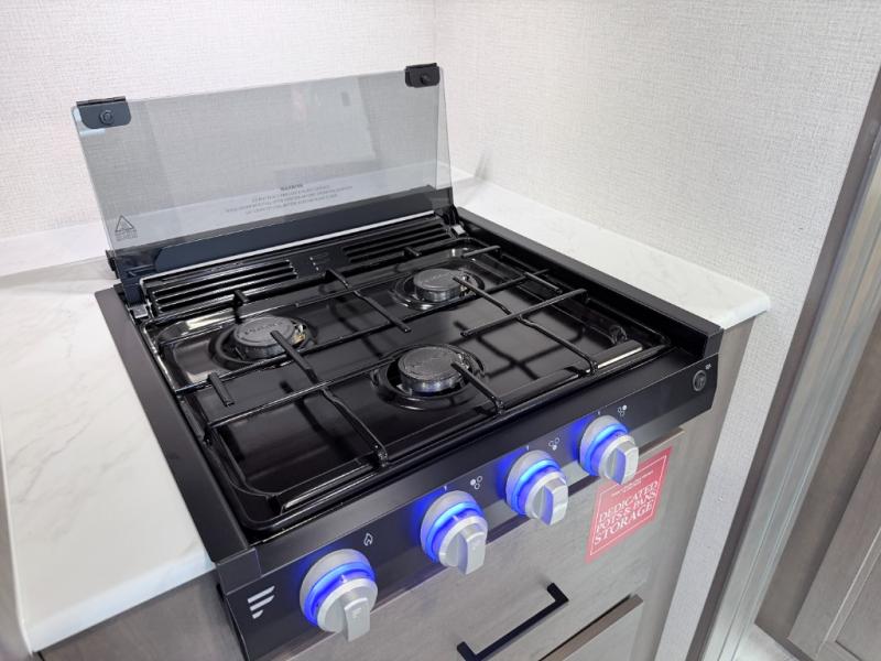 Prepare meals with ease on the three-burner cooktop inside or use the convenient outdoor kitchen featuring a two-burner cooktop and refrigerator. A full bath saves you trips to the campground facilities, while the pet dish under the refrigerator keeps your furry friend happy. Enjoy relaxing outdoors under the 17' power awning and make use of the spacious pass-through storage for all your gear.