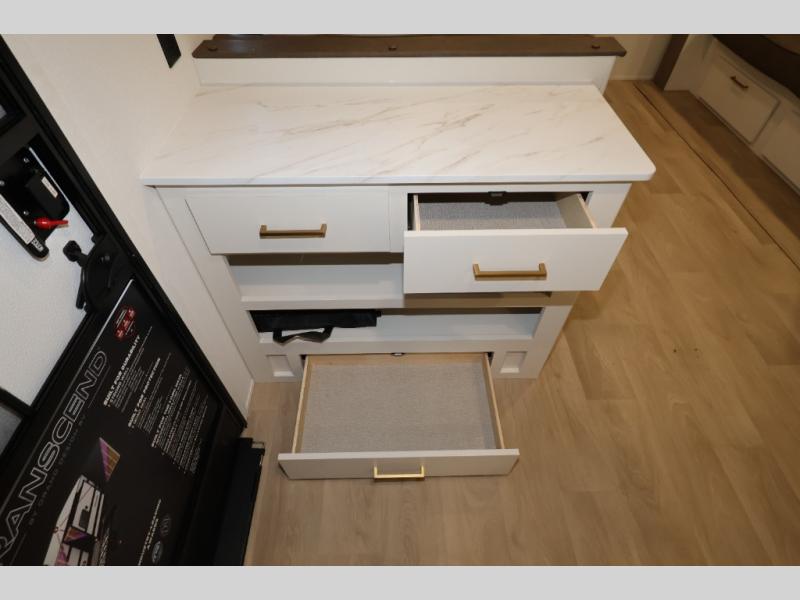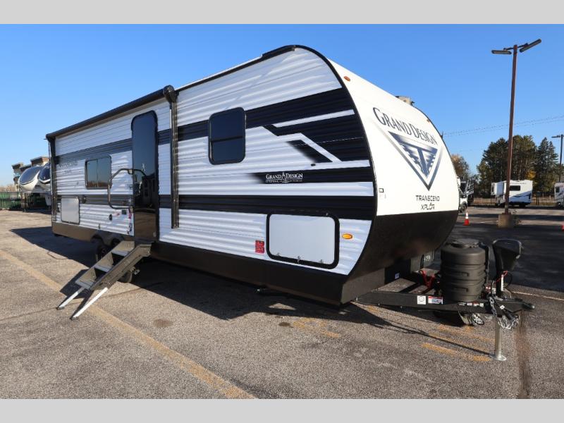 The customer-focused, quality-built Transcend Xplor travel trailers by Grand Design are your ticket to fun and adventure. You will appreciate the power tongue jack when it comes time to set up, as well as the all-in-one utility center and the detachable power cord with an LED light. These models include many outlets throughout, USB ports to charge your gadgets, and a JBL exterior speaker to listen to your favorite tunes. The interior of the Transcend Xplor will have you feeling right at home with upgraded residential furniture, residential countertops, residential cabinet doors, and the list goes on!