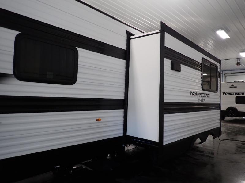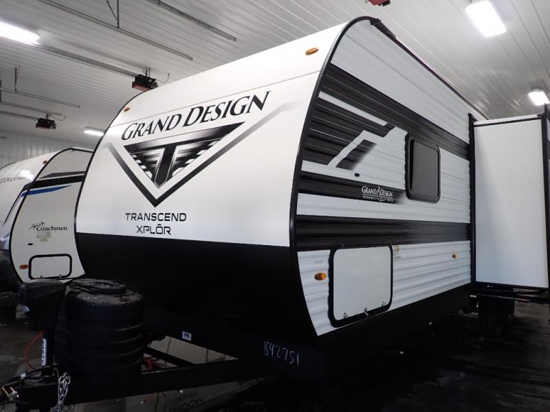 The customer-focused, quality-built Transcend Xplor travel trailers by Grand Design are your ticket to fun and adventure. You will appreciate the power tongue jack when it comes time to set up, as well as the all-in-one utility center and the detachable power cord with an LED light. These models include many outlets throughout, USB ports to charge your gadgets, and a JBL exterior speaker to listen to your favorite tunes. The interior of the Transcend Xplor will have you feeling right at home with upgraded residential furniture, residential countertops, residential cabinet doors, and the list goes on!