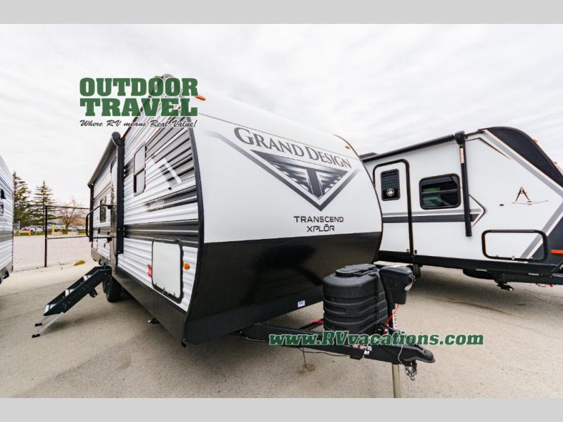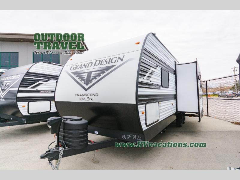 The customer-focused, quality-built Transcend Xplor travel trailers by Grand Design are your ticket to fun and adventure. You will appreciate the power tongue jack when it comes time to set up, as well as the all-in-one utility center and the detachable power cord with an LED light. These models include many outlets throughout, USB ports to charge your gadgets, and a JBL exterior speaker to listen to your favorite tunes. The interior of the Transcend Xplor will have you feeling right at home with upgraded residential furniture, residential countertops, residential cabinet doors, and the list goes on!