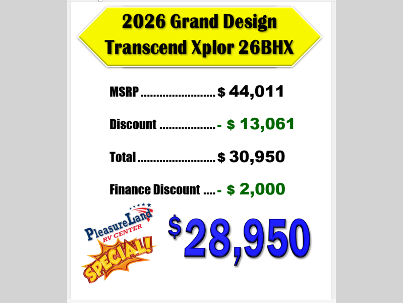 New 2026 Grand Design Transcend Xplor 26BHX Travel Trailer