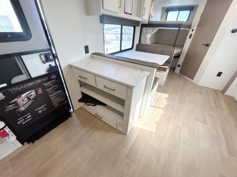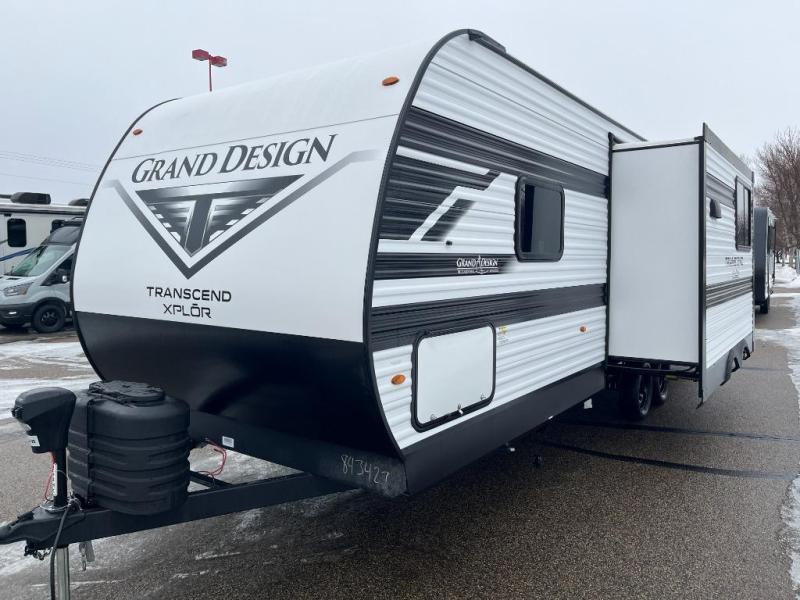 The customer-focused, quality-built Transcend Xplor travel trailers by Grand Design are your ticket to fun and adventure. You will appreciate the power tongue jack when it comes time to set up, as well as the all-in-one utility center and the detachable power cord with an LED light. These models include many outlets throughout, USB ports to charge your gadgets, and a JBL exterior speaker to listen to your favorite tunes. The interior of the Transcend Xplor will have you feeling right at home with upgraded residential furniture, residential countertops, residential cabinet doors, and the list goes on!