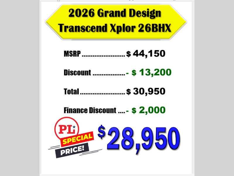 New 2026 Grand Design Transcend Xplor 26BHX Travel Trailer