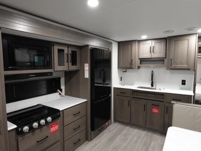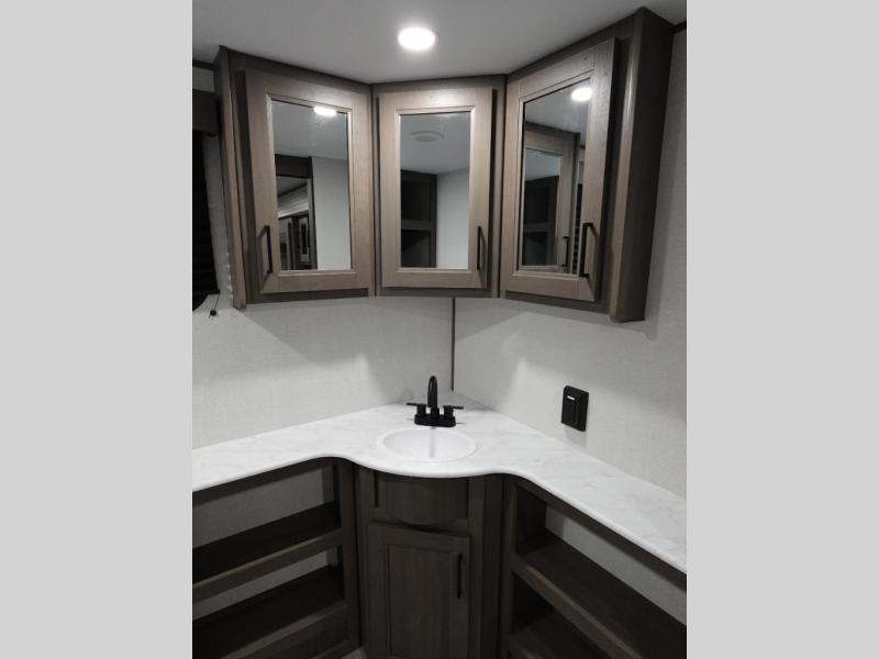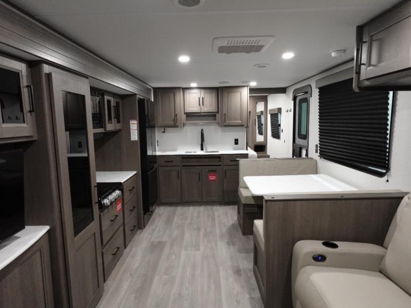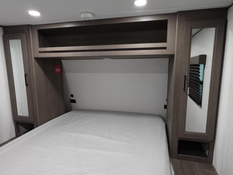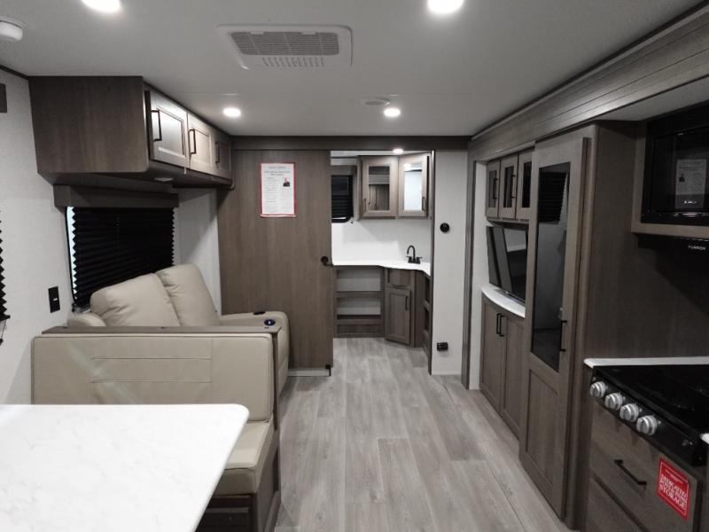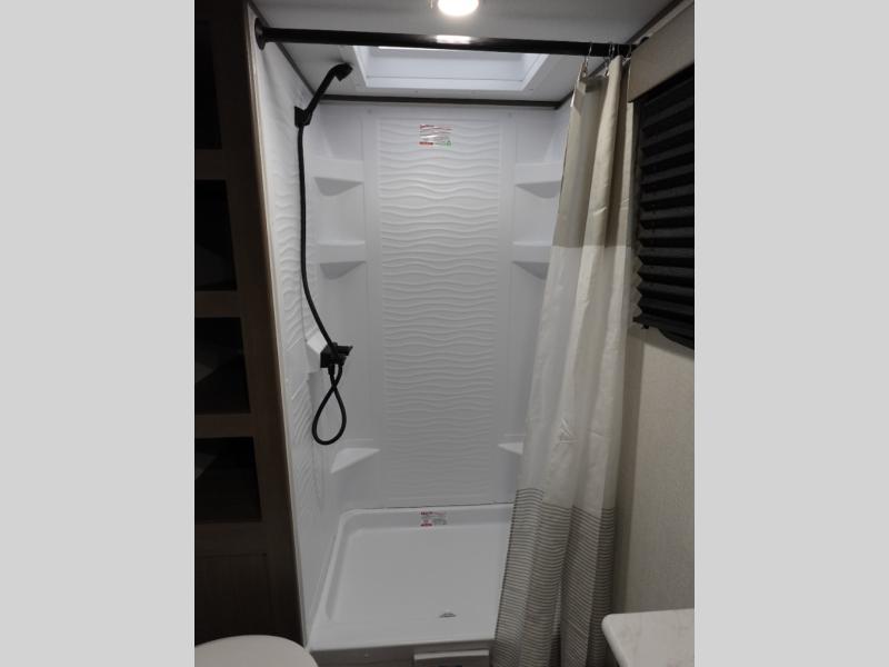 Your search for the perfect couple's trailer is over with this RV in tow! You will enjoy your own private bedroom up front with a queen bed, overhead storage, and TV prep if you choose to bring along your own television. The spacious full rear bath includes a linen closet and a walk-in shower to easily clean up each day. The booth dinette can also be used for an overnight guest or two little ones. This model also includes plenty of storage space and plenty of counter space to prep and cook at-home meals! Finally relax under the shade of the massive 19' awning.