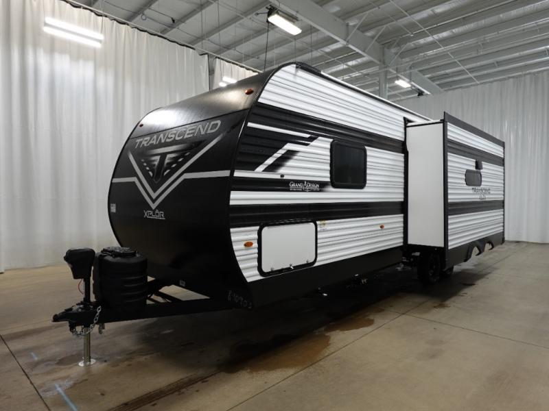 The customer-focused, quality-built Transcend Xplor travel trailers by Grand Design are your ticket to fun and adventure. You will appreciate the power tongue jack when it comes time to set up, as well as the all-in-one utility center and the detachable power cord with an LED light. These models include many outlets throughout, USB ports to charge your gadgets, and a JBL exterior speaker to listen to your favorite tunes. The interior of the Transcend Xplor will have you feeling right at home with upgraded residential furniture, residential countertops, residential cabinet doors, and the list goes on!