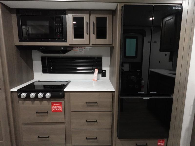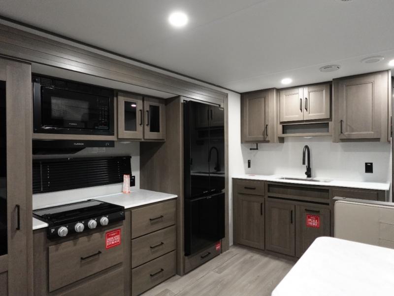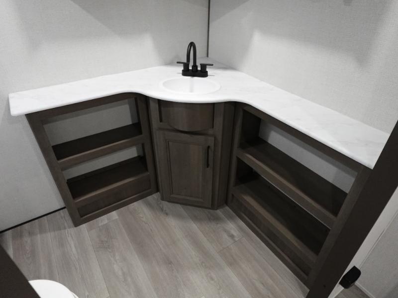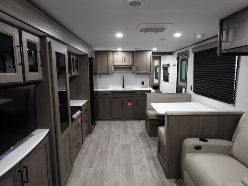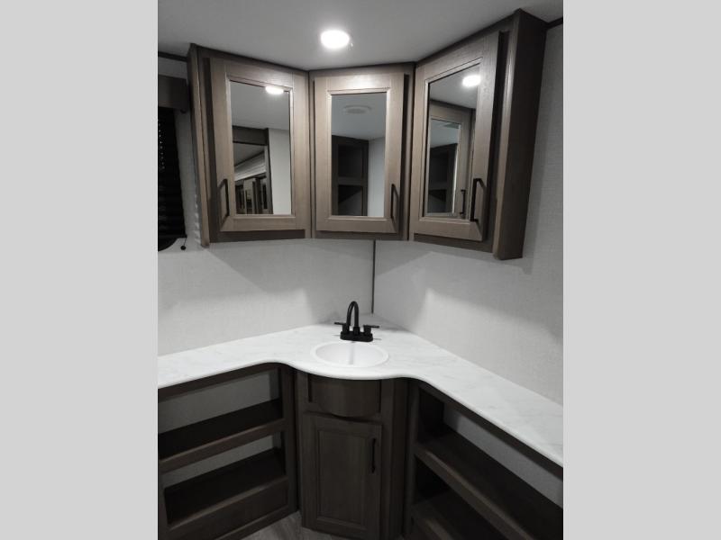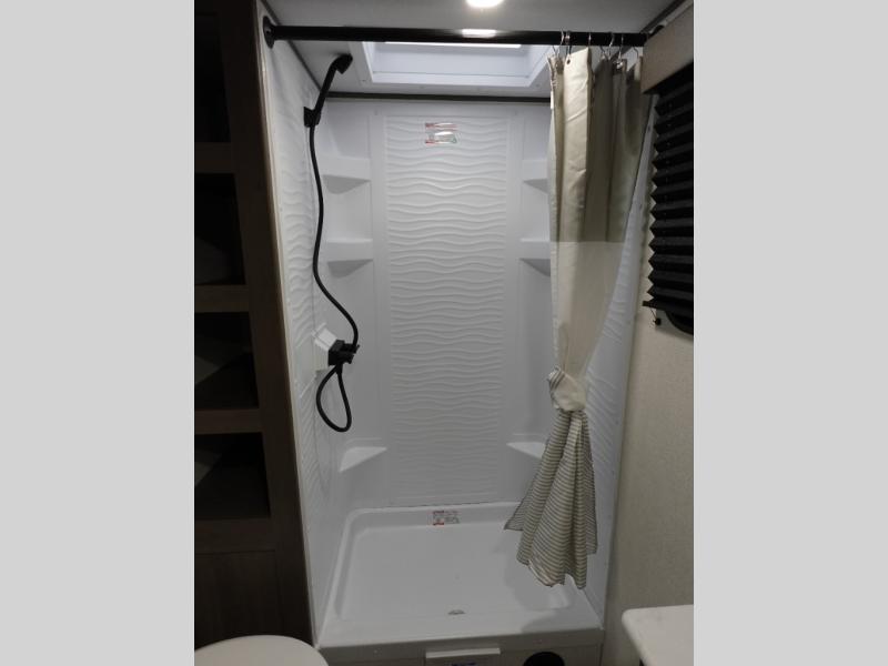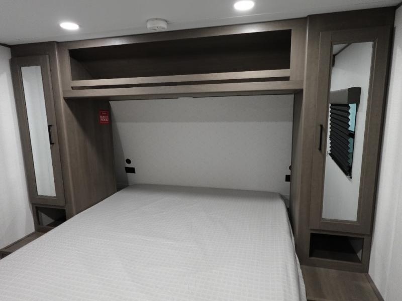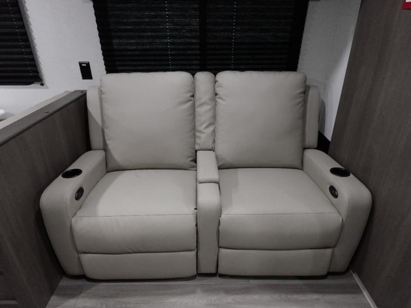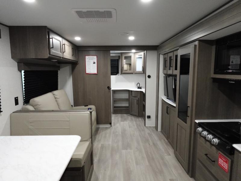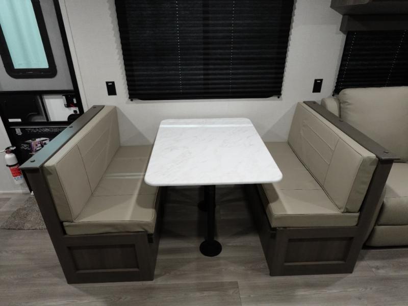 Your search for the perfect couple's trailer is over with this RV in tow! You will enjoy your own private bedroom up front with a queen bed, overhead storage, and TV prep if you choose to bring along your own television. The spacious full rear bath includes a linen closet and a walk-in shower to easily clean up each day. Relax on the 60" sleeper sofa after a long day outdoors, or you can choose the optional theater seating if you don't need additional sleeping space. The booth dinette can also be used for an overnight guest or two little ones. This model also includes plenty of storage space and plenty of counter space to prep and cook at-home meals! Finally relax under the shade of the massive 19' awning.