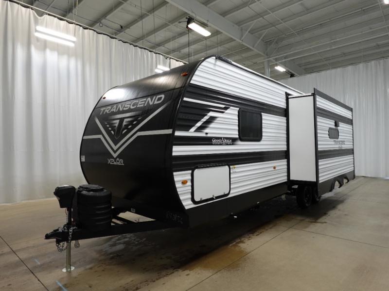 The customer-focused, quality-built Transcend Xplor travel trailers by Grand Design are your ticket to fun and adventure. You will appreciate the power tongue jack when it comes time to set up, as well as the all-in-one utility center and the detachable power cord with an LED light. These models include many outlets throughout, USB ports to charge your gadgets, and a JBL exterior speaker to listen to your favorite tunes. The interior of the Transcend Xplor will have you feeling right at home with upgraded residential furniture, residential countertops, residential cabinet doors, and the list goes on!