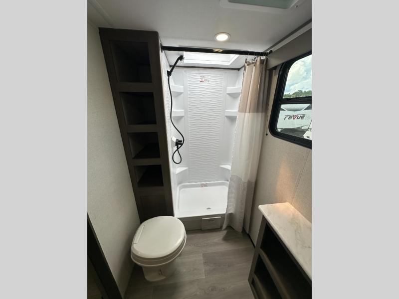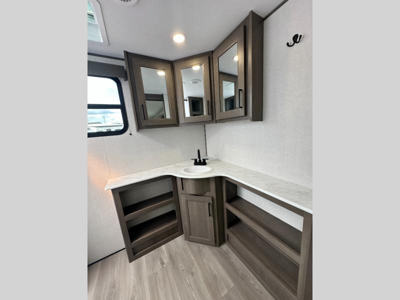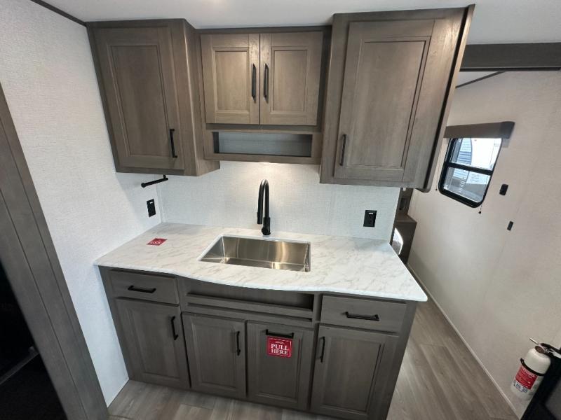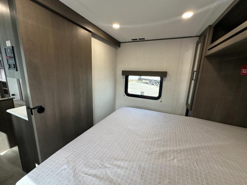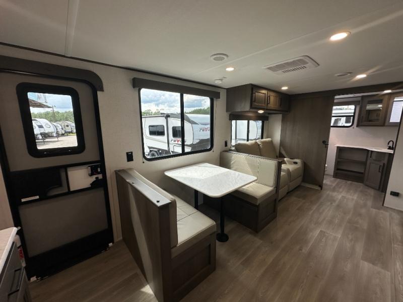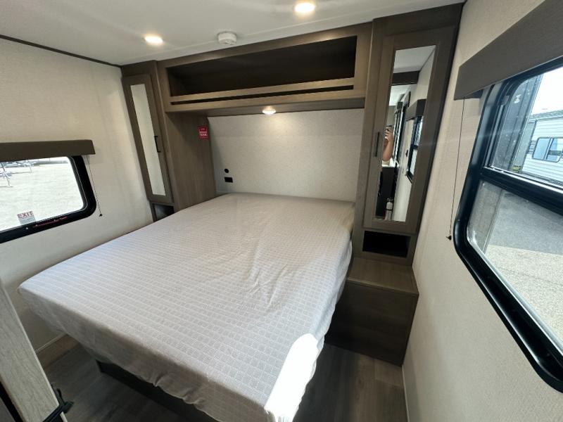 Your search for the perfect couple's trailer is over with this RV in tow! You will enjoy your own private bedroom up front with a queen bed, overhead storage, and TV prep if you choose to bring along your own television. The spacious full rear bath includes a linen closet and a walk-in shower to easily clean up each day. Relax on the 60" sleeper sofa after a long day outdoors, or you can choose the optional theater seating if you don't need additional sleeping space. The booth dinette can also be used for an overnight guest or two little ones. This model also includes plenty of storage space and plenty of counter space to prep and cook at-home meals! Finally relax under the shade of the massive 19' awning.