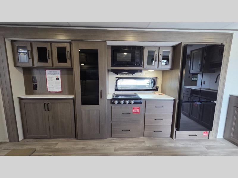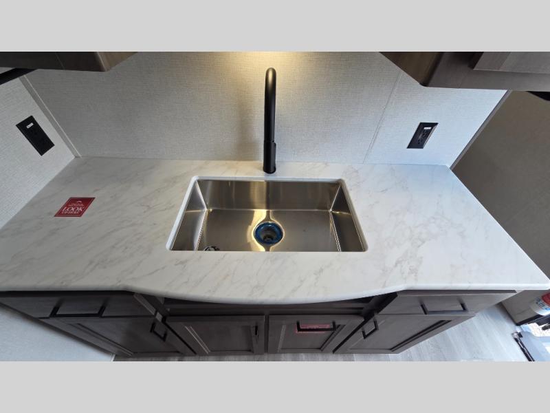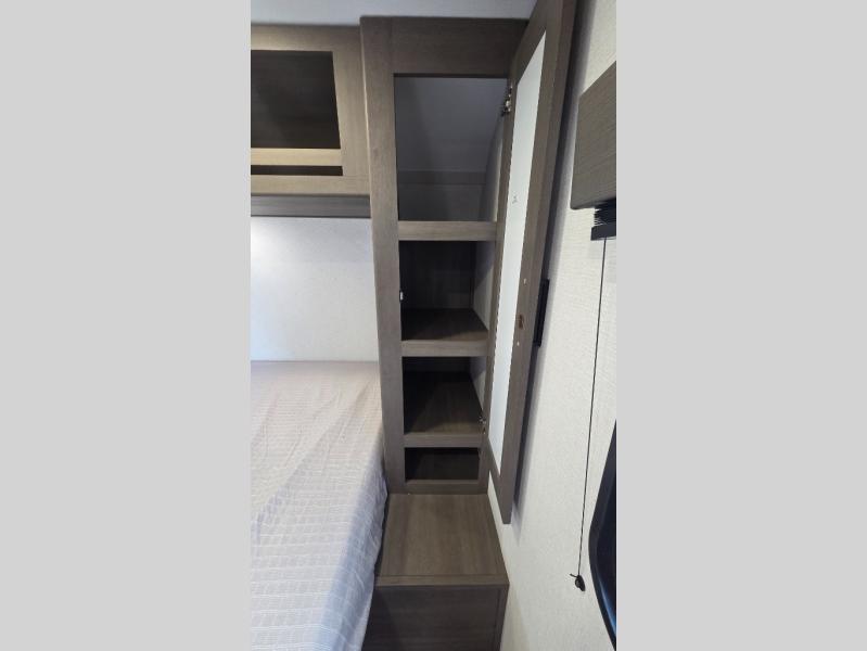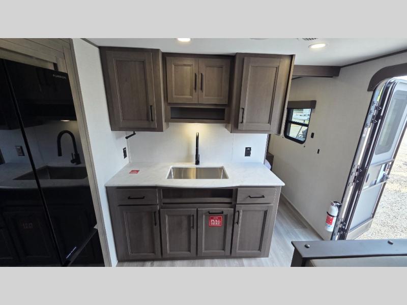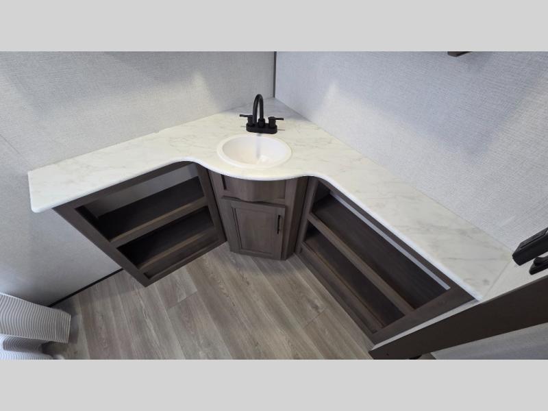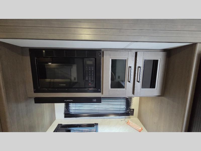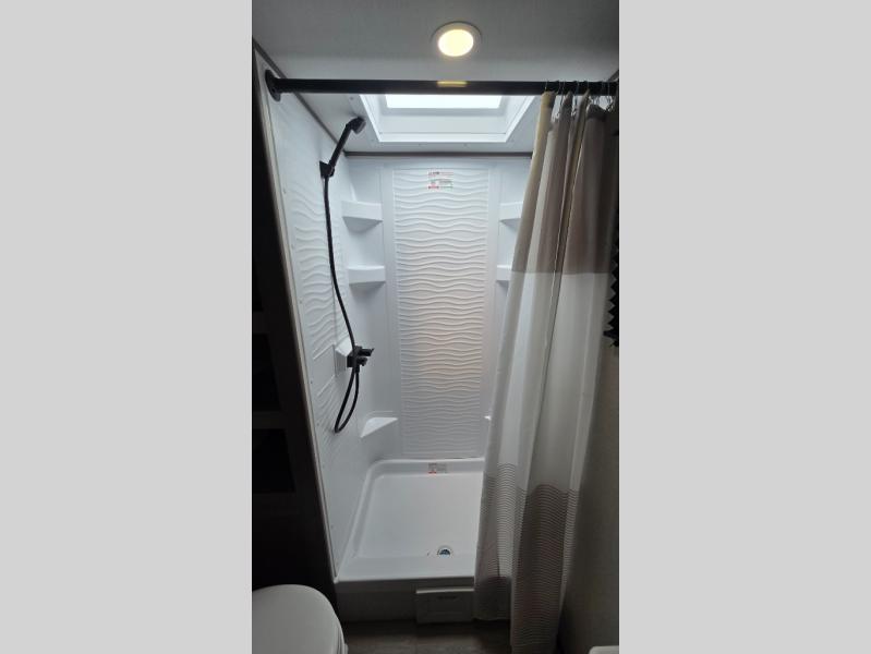 Your search for the perfect couple's trailer is over with this RV in tow! You will enjoy your own private bedroom up front with a queen bed, overhead storage, and TV prep if you choose to bring along your own television. The spacious full rear bath includes a linen closet and a walk-in shower to easily clean up each day. Relax on the 60" sleeper sofa after a long day outdoors, or you can choose the optional theater seating if you don't need additional sleeping space. The booth dinette can also be used for an overnight guest or two little ones. This model also includes plenty of storage space and plenty of counter space to prep and cook at-home meals! Finally relax under the shade of the massive 19' awning.
