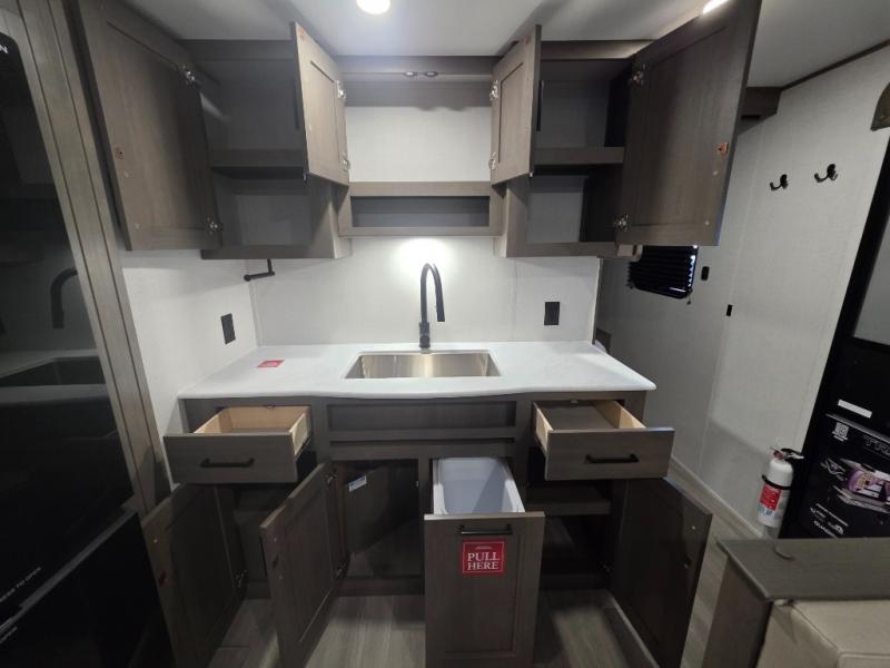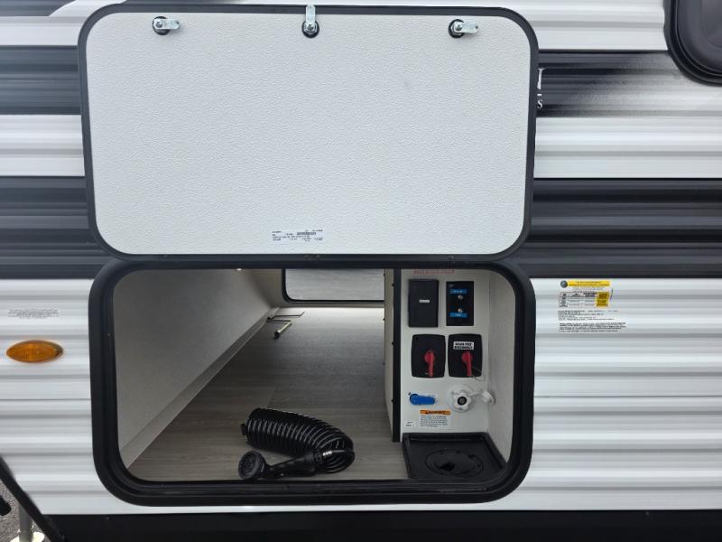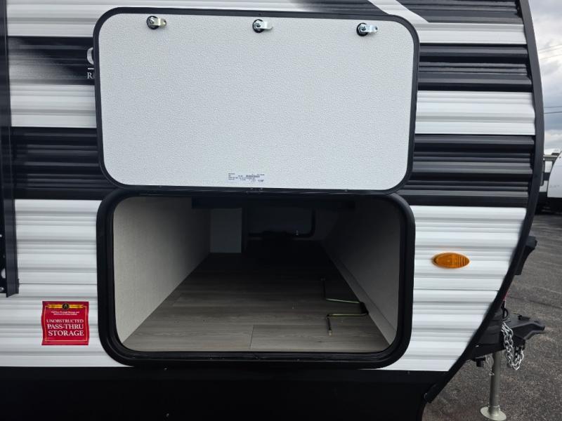 From the aluminum solid step entry to the 19' power awning, universal docking station, 2000W inverter prep, and 600W solar prep, this trailer is packed with features that make off-grid or on-grid living easy and enjoyable. You’ll also enjoy pass-through storage and a rear spray port for outdoor cleanup.