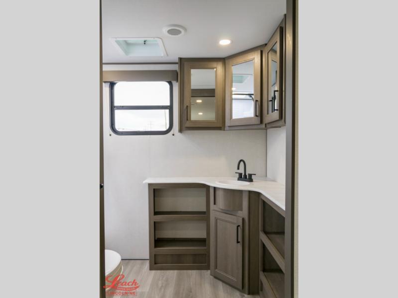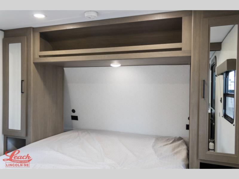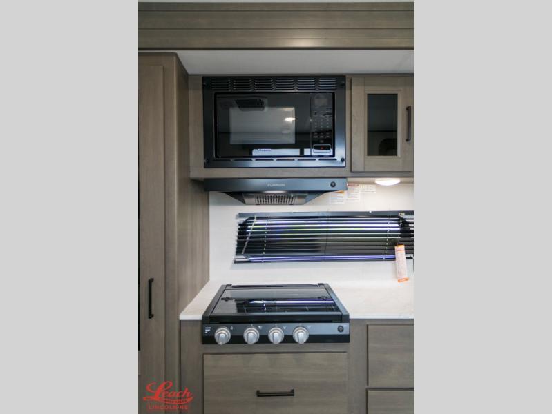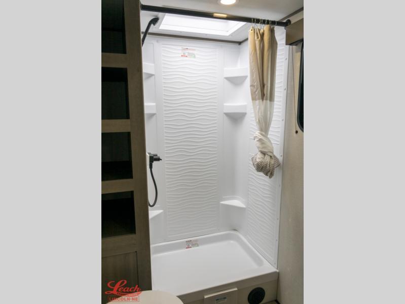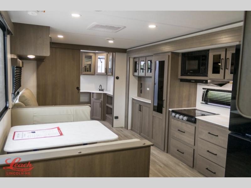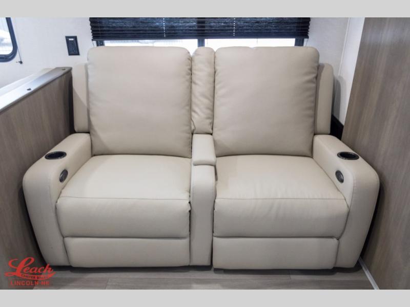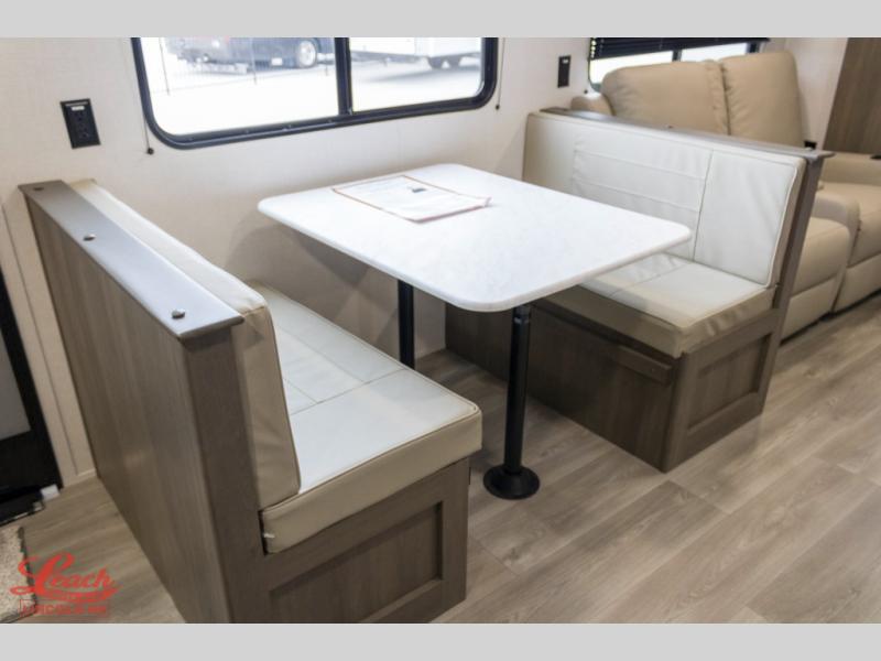 Your search for the perfect couple's trailer is over with this RV in tow! You will enjoy your own private bedroom up front with a queen bed, overhead storage, and TV prep if you choose to bring along your own television. The spacious full rear bath includes a linen closet and a walk-in shower to easily clean up each day. Relax on the 60" sleeper sofa after a long day outdoors, or you can choose the optional theater seating if you don't need additional sleeping space. The booth dinette can also be used for an overnight guest or two little ones. This model also includes plenty of storage space and plenty of counter space to prep and cook at-home meals! Finally relax under the shade of the massive 19' awning.