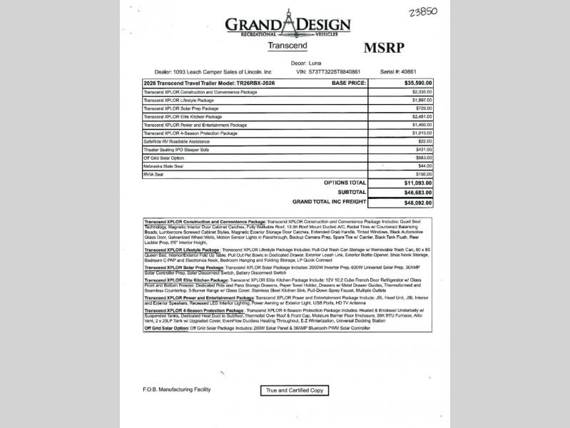 New 2026 Grand Design Transcend Xplor 26RBX Travel Trailer