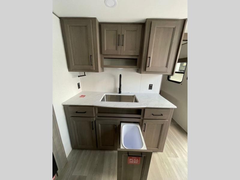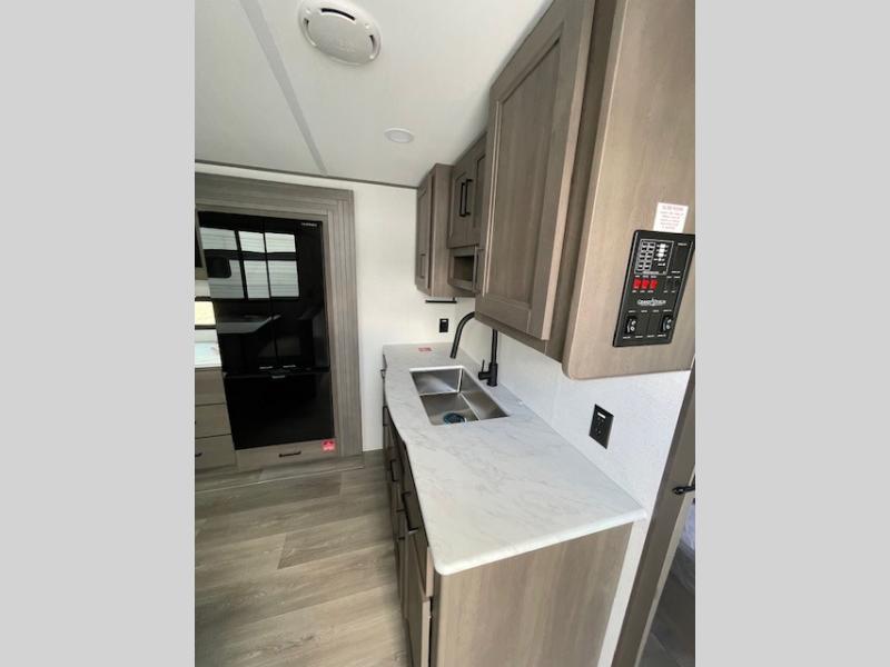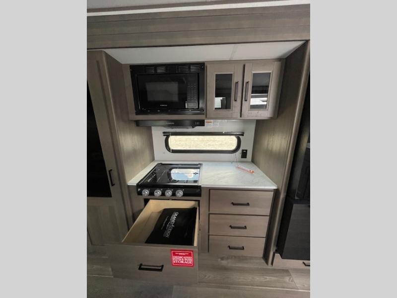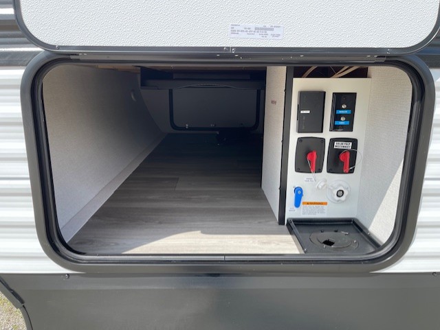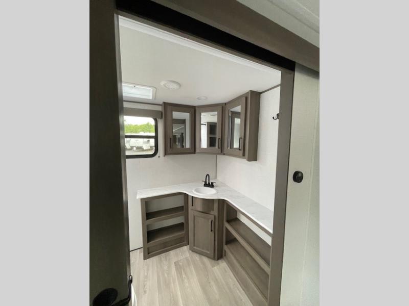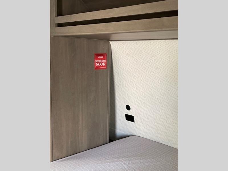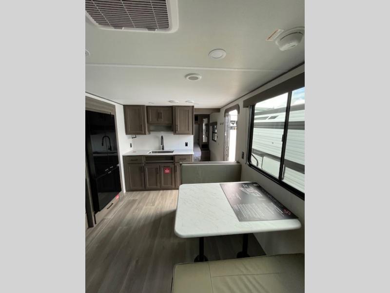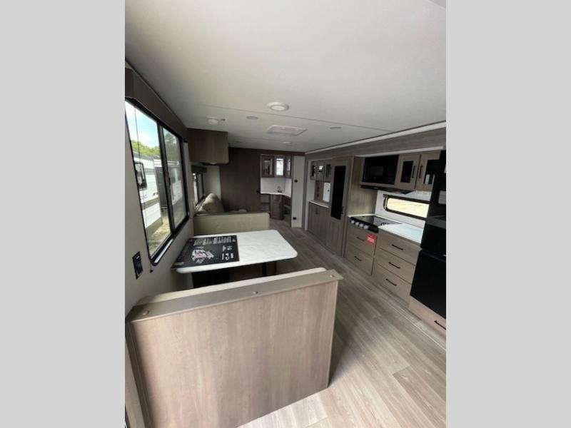 Your search for the perfect couple's trailer is over with this RV in tow! You will enjoy your own private bedroom up front with a queen bed, overhead storage, and TV prep if you choose to bring along your own television. The spacious full rear bath includes a linen closet and a walk-in shower to easily clean up each day. Relax on the 60" sleeper sofa after a long day outdoors, or you can choose the optional theater seating if you don't need additional sleeping space. The booth dinette can also be used for an overnight guest or two little ones. This model also includes plenty of storage space and plenty of counter space to prep and cook at-home meals! Finally relax under the shade of the massive 19' awning.