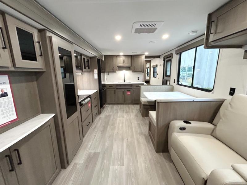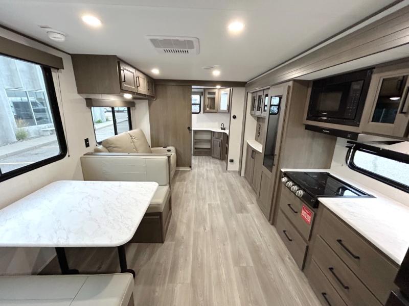 Your search for the perfect couple's trailer is over with this RV in tow! You will enjoy your own private bedroom up front with a queen bed, overhead storage, and TV prep if you choose to bring along your own television. The spacious full rear bath includes a linen closet and a walk-in shower to easily clean up each day. Relax on the 60" sleeper sofa after a long day outdoors, or you can choose the optional theater seating if you don't need additional sleeping space. The booth dinette can also be used for an overnight guest or two little ones. This model also includes plenty of storage space and plenty of counter space to prep and cook at-home meals! Finally relax under the shade of the massive 19' awning.
