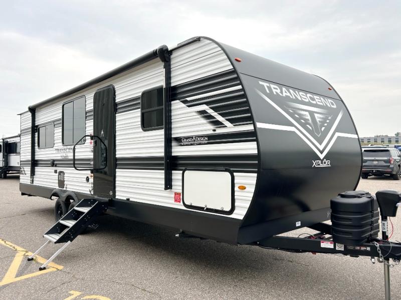 The customer-focused, quality-built Transcend Xplor travel trailers by Grand Design are your ticket to fun and adventure. You will appreciate the power tongue jack when it comes time to set up, as well as the all-in-one utility center and the detachable power cord with an LED light. These models include many outlets throughout, USB ports to charge your gadgets, and a JBL exterior speaker to listen to your favorite tunes. The interior of the Transcend Xplor will have you feeling right at home with upgraded residential furniture, residential countertops, residential cabinet doors, and the list goes on!