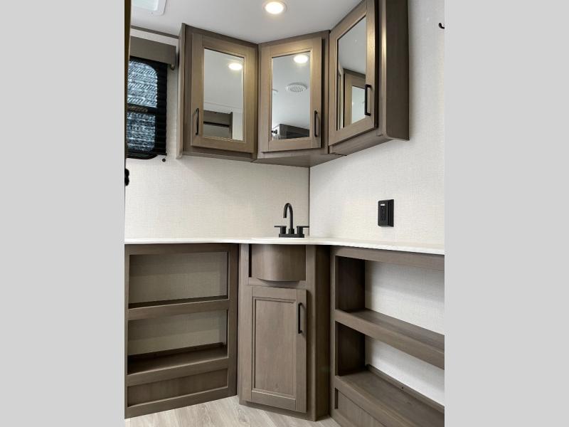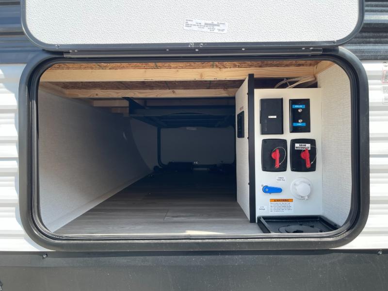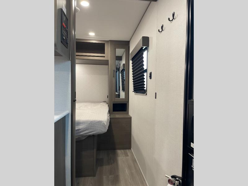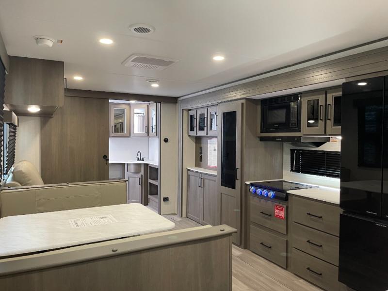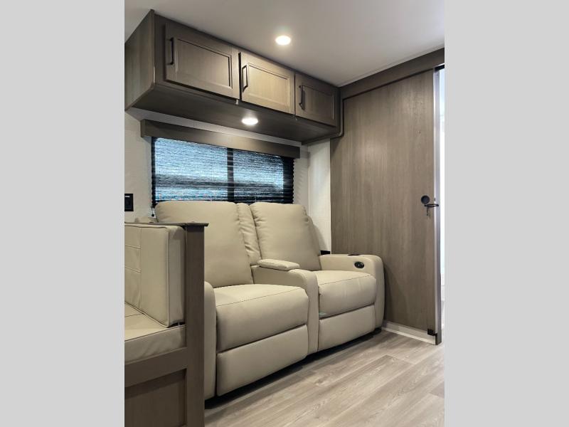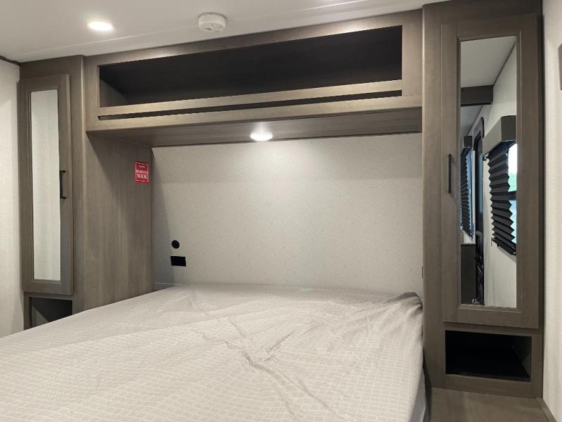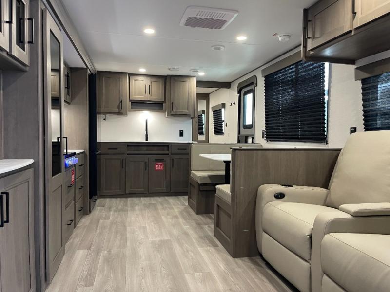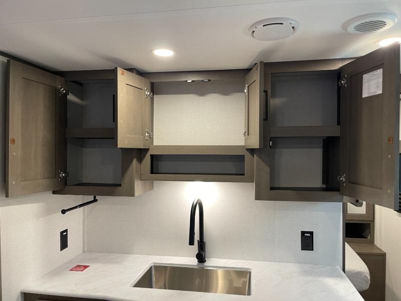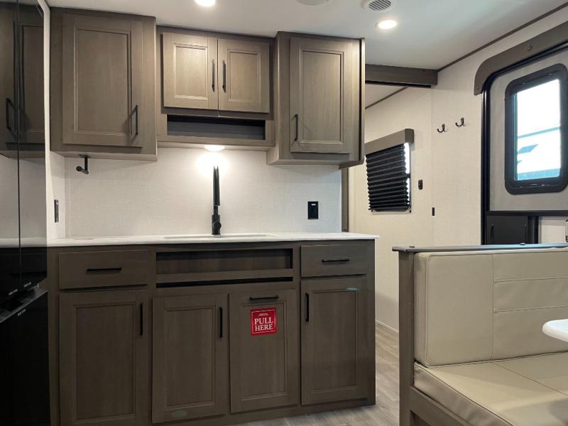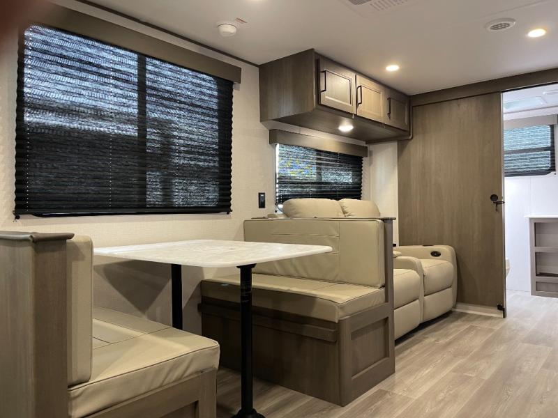 Your search for the perfect couple's trailer is over with this RV in tow! You will enjoy your own private bedroom up front with a queen bed, overhead storage, and TV prep if you choose to bring along your own television. The spacious full rear bath includes a linen closet and a walk-in shower to easily clean up each day. Relax on the 60" sleeper sofa after a long day outdoors, or you can choose the optional theater seating if you don't need additional sleeping space. The booth dinette can also be used for an overnight guest or two little ones. This model also includes plenty of storage space and plenty of counter space to prep and cook at-home meals! Finally relax under the shade of the massive 19' awning.