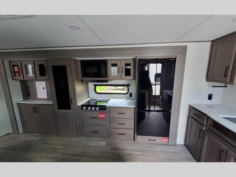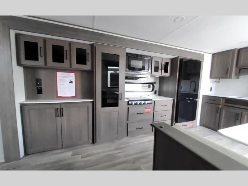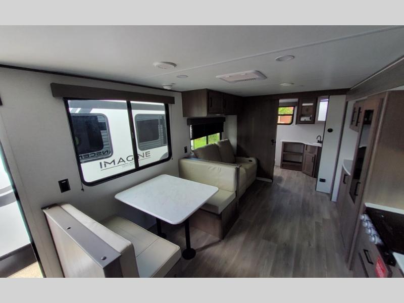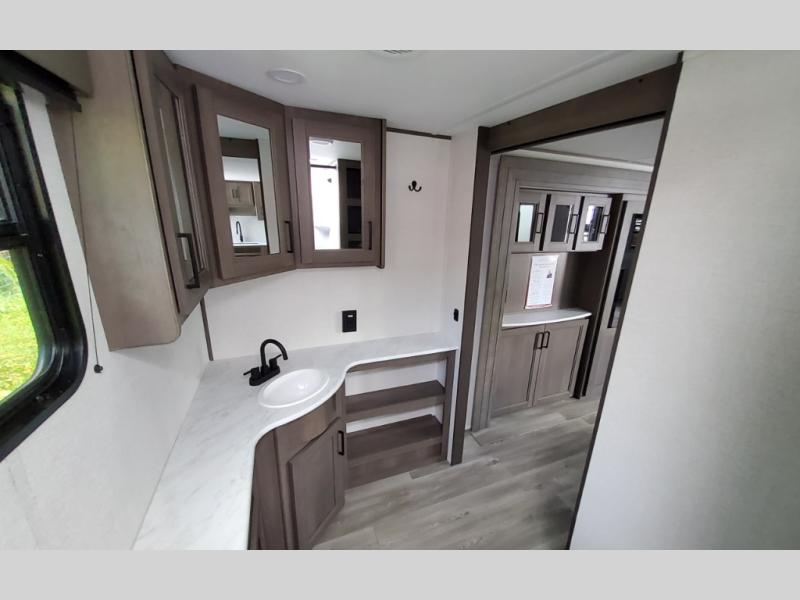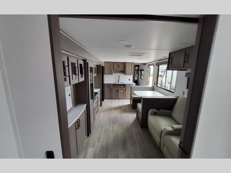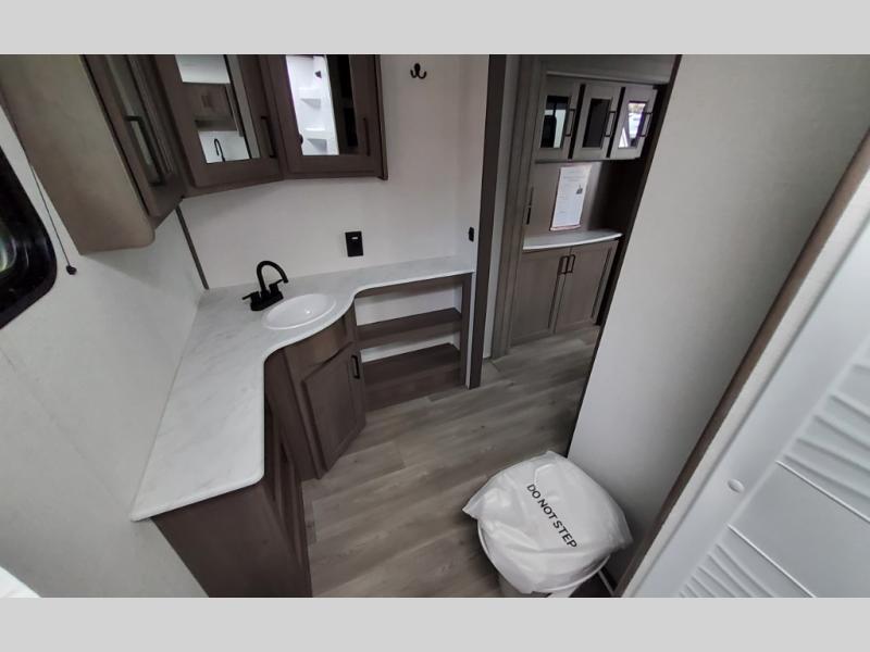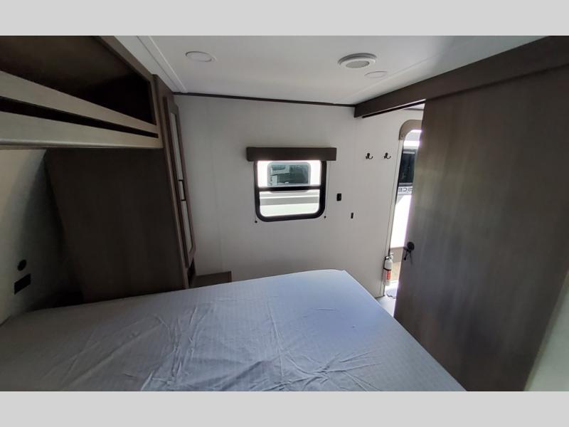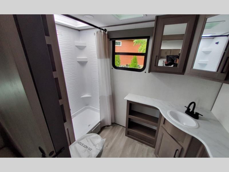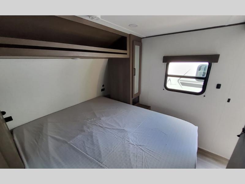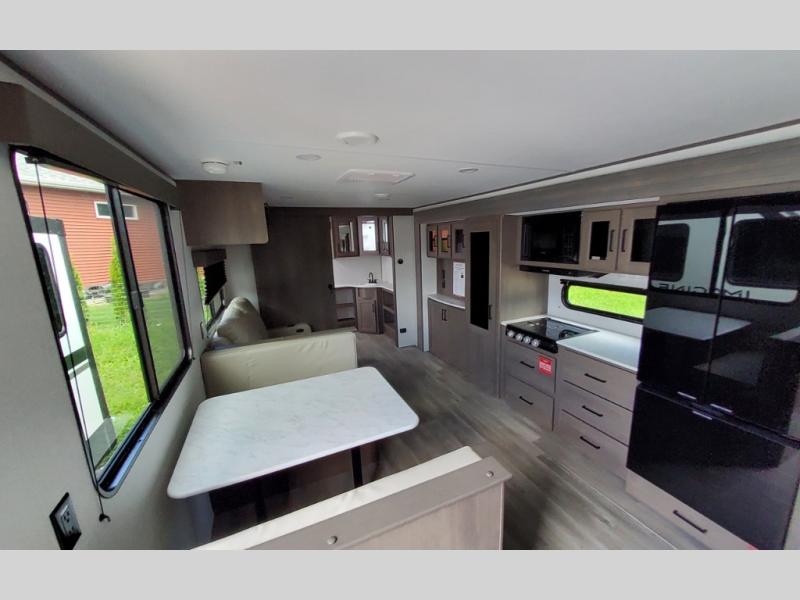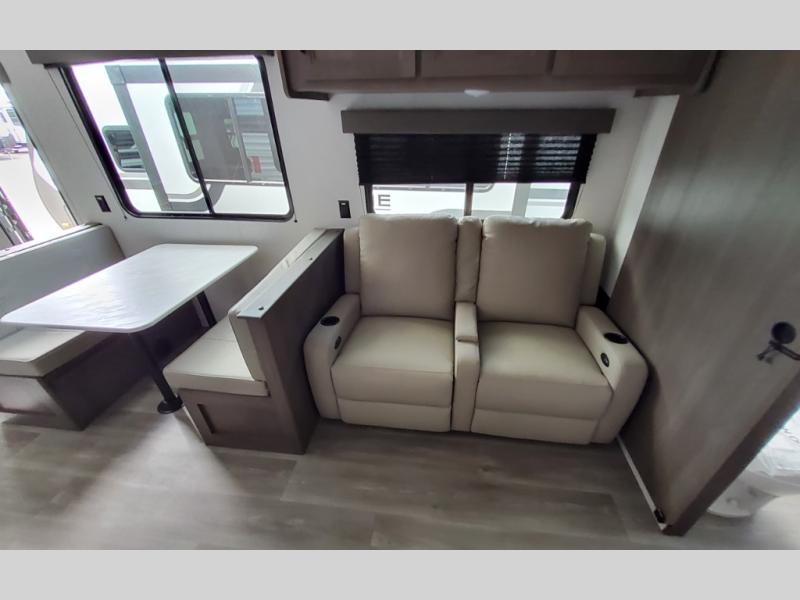 Your search for the perfect couple's trailer is over with this RV in tow! You will enjoy your own private bedroom up front with a queen bed, overhead storage, and TV prep if you choose to bring along your own television. The spacious full rear bath includes a linen closet and a walk-in shower to easily clean up each day. Relax on the 60" sleeper sofa after a long day outdoors, or you can choose the optional theater seating if you don't need additional sleeping space. The booth dinette can also be used for an overnight guest or two little ones. This model also includes plenty of storage space and plenty of counter space to prep and cook at-home meals! Finally relax under the shade of the massive 19' awning.