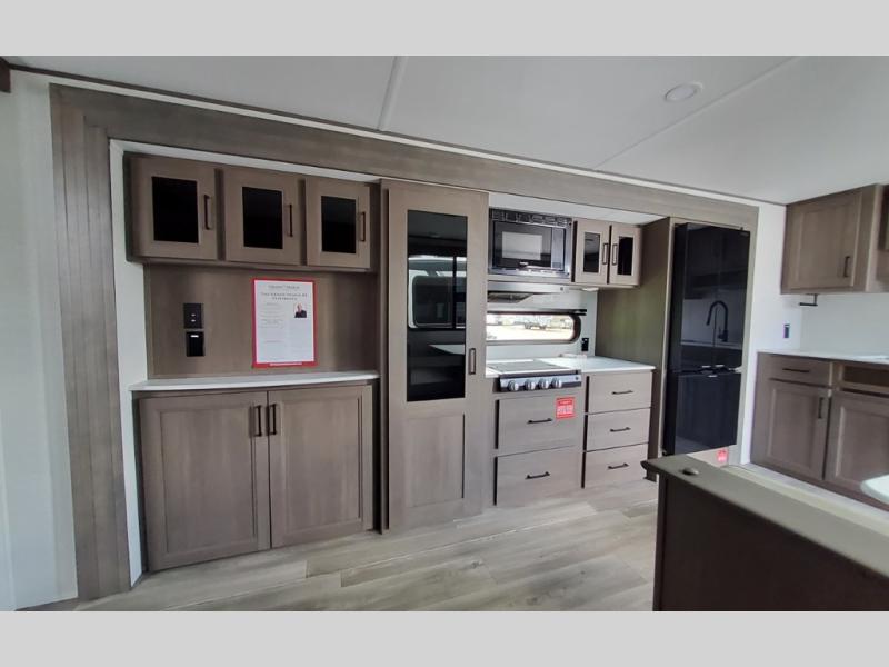 The customer-focused, quality-built Transcend Xplor travel trailers by Grand Design are your ticket to fun and adventure. You will appreciate the power tongue jack when it comes time to set up, as well as the all-in-one utility center and the detachable power cord with an LED light. These models include many outlets throughout, USB ports to charge your gadgets, and a JBL exterior speaker to listen to your favorite tunes. The interior of the Transcend Xplor will have you feeling right at home with upgraded residential furniture, residential countertops, residential cabinet doors, and the list goes on!