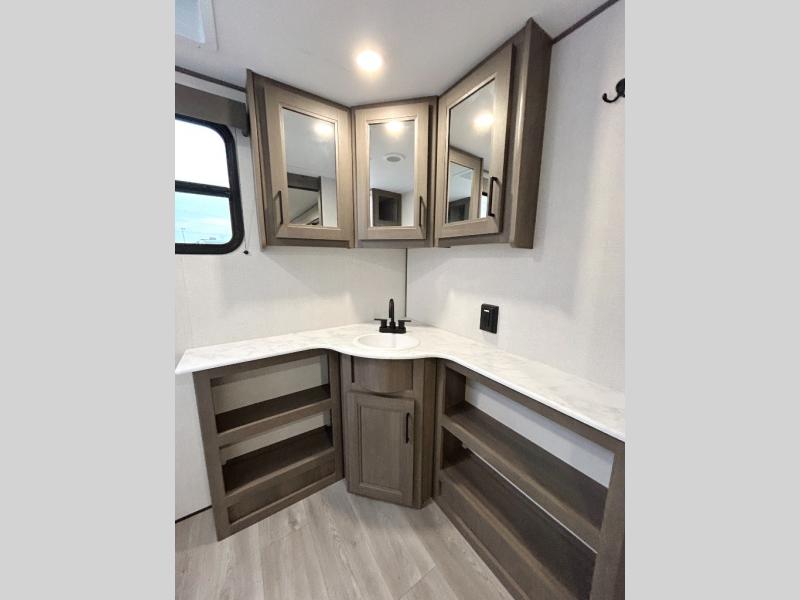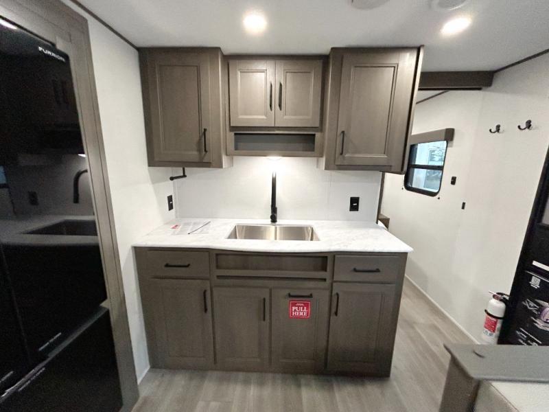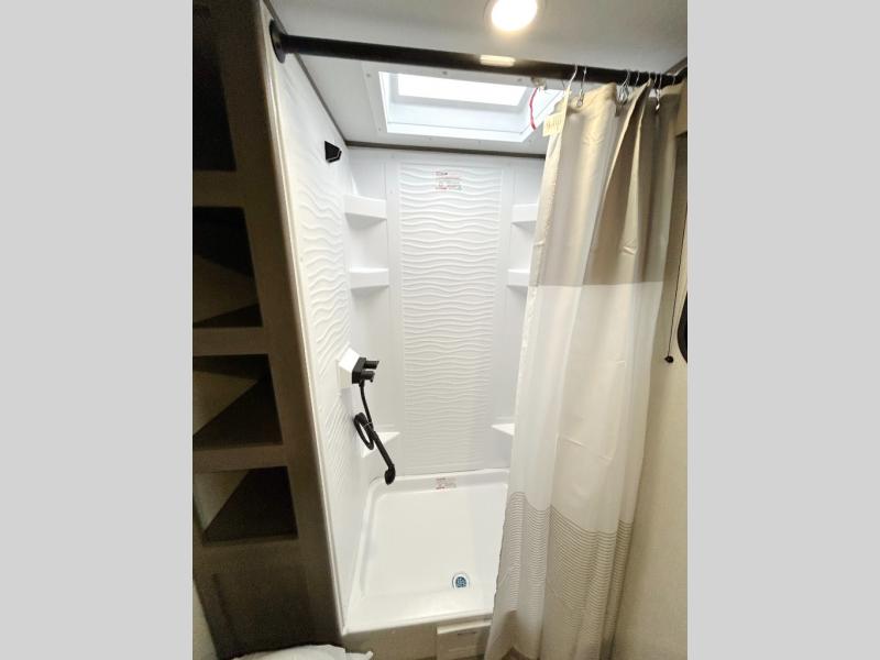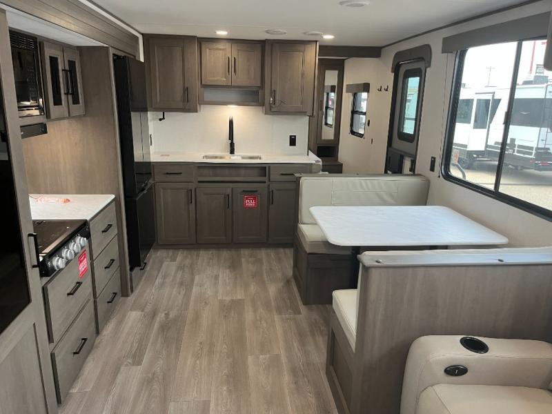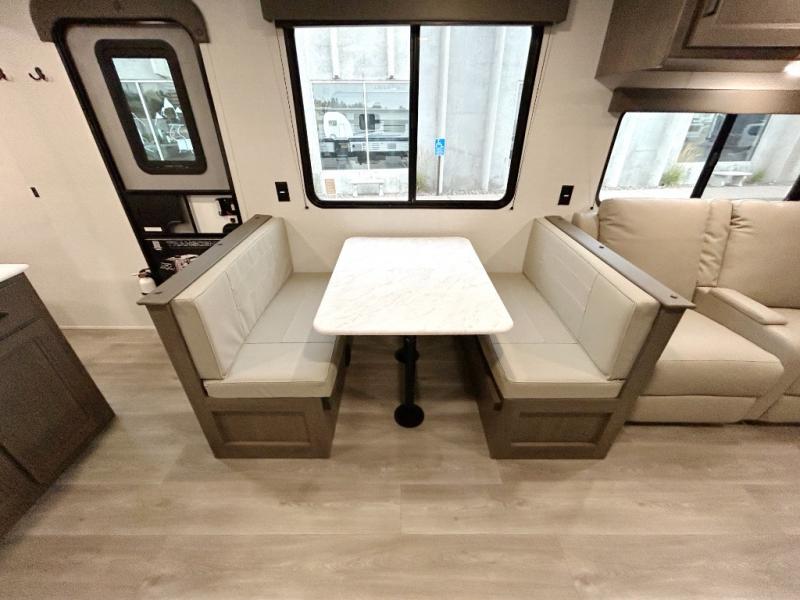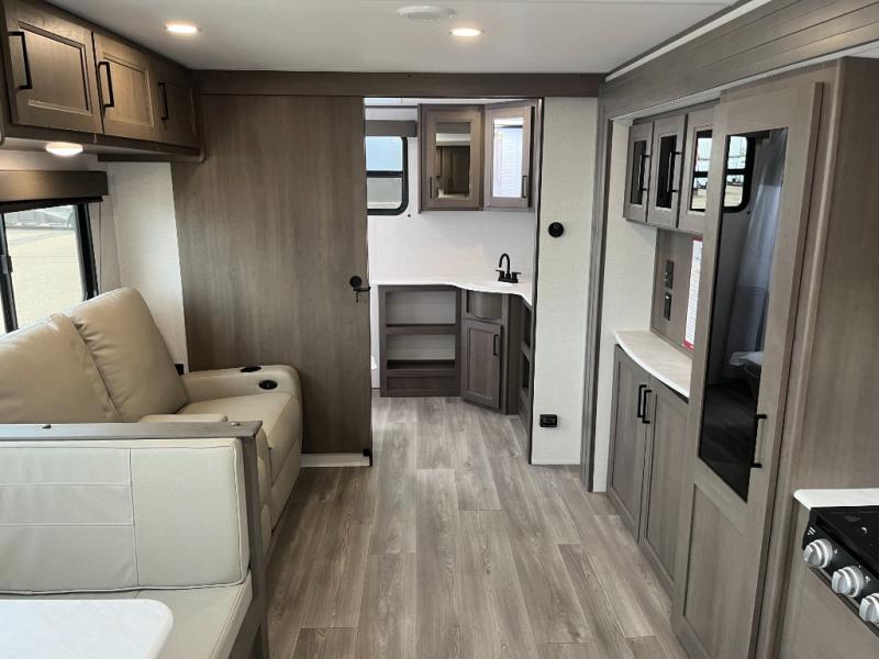 Your search for the perfect couple's trailer is over with this RV in tow! You will enjoy your own private bedroom up front with a queen bed, overhead storage, and TV prep if you choose to bring along your own television. The spacious full rear bath includes a linen closet and a walk-in shower to easily clean up each day. Relax on the 60" sleeper sofa after a long day outdoors, or you can choose the optional theater seating if you don't need additional sleeping space. The booth dinette can also be used for an overnight guest or two little ones. This model also includes plenty of storage space and plenty of counter space to prep and cook at-home meals! Finally relax under the shade of the massive 19' awning.