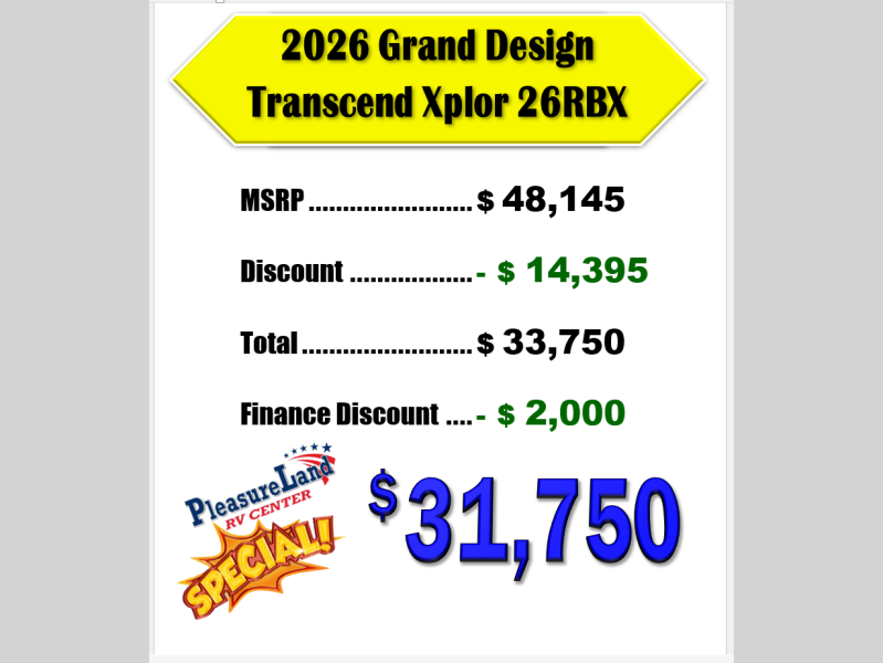 New 2026 Grand Design Transcend Xplor 26RBX Travel Trailer