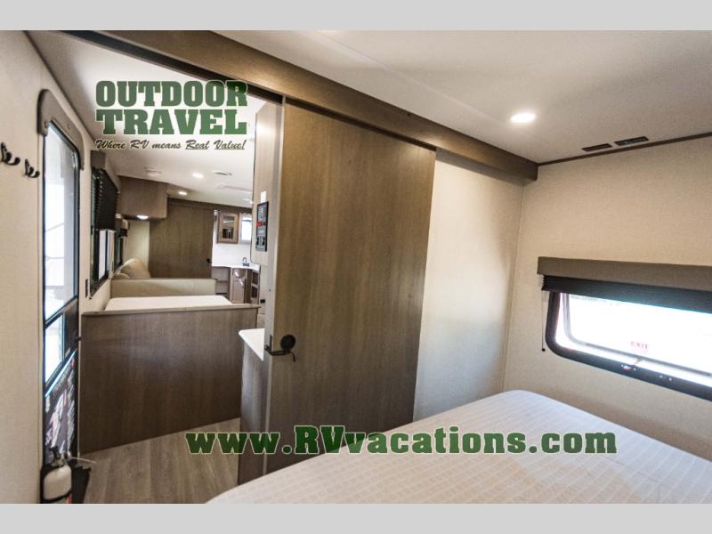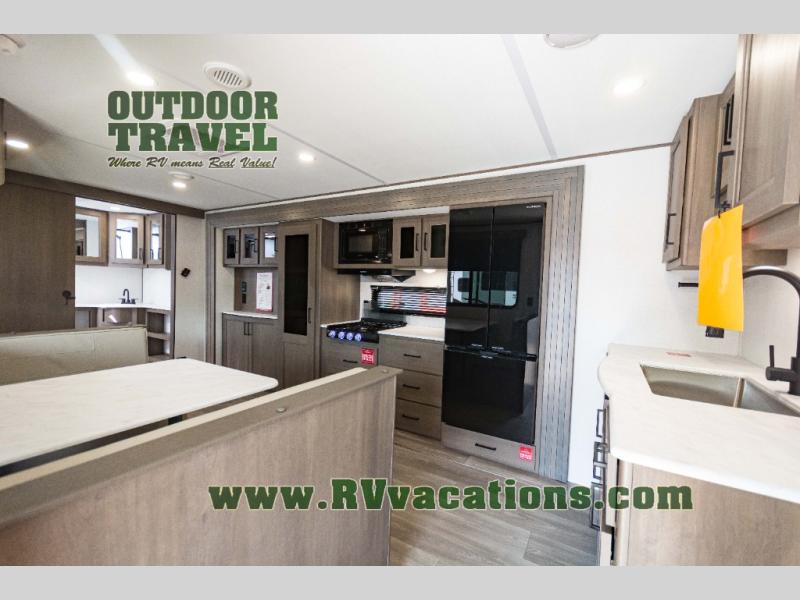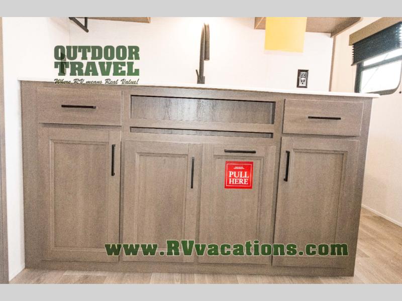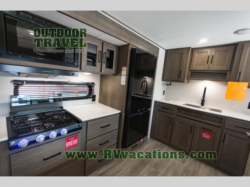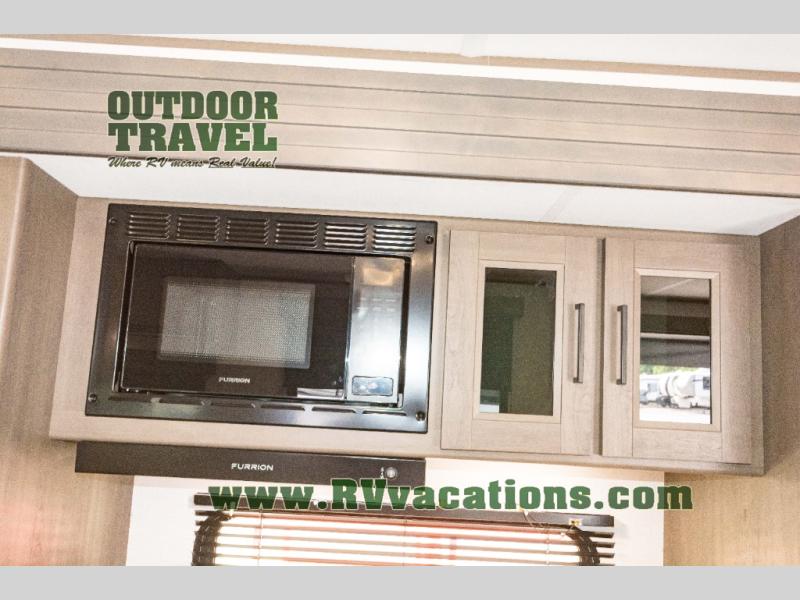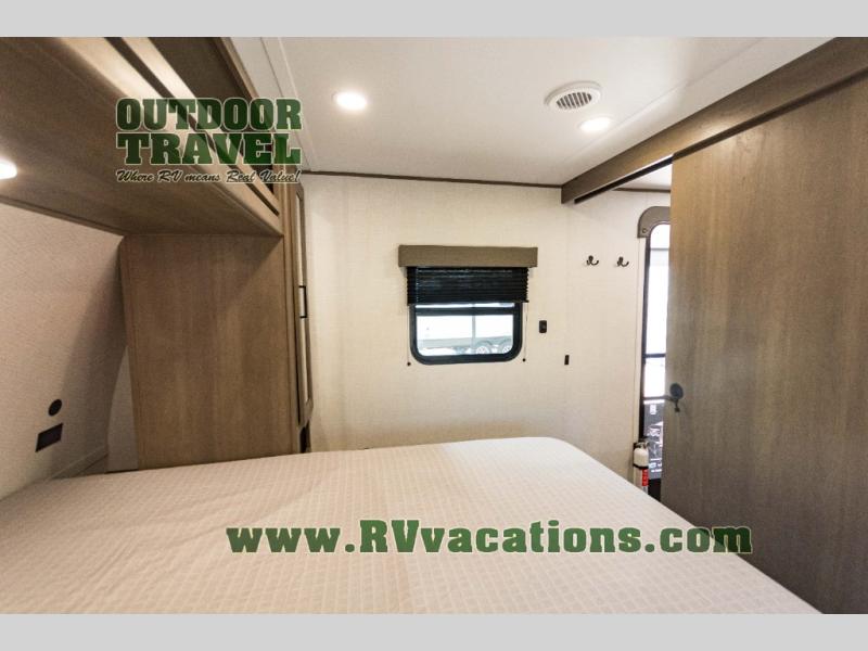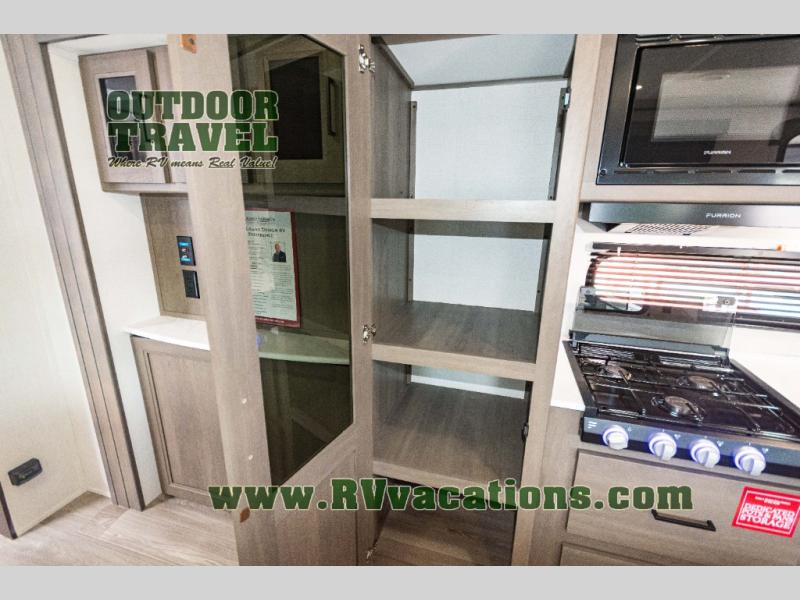 Your search for the perfect couple's trailer is over with this RV in tow! You will enjoy your own private bedroom up front with a queen bed, overhead storage, and TV prep if you choose to bring along your own television. The spacious full rear bath includes a linen closet and a walk-in shower to easily clean up each day. Relax on the 60" sleeper sofa after a long day outdoors, or you can choose the optional theater seating if you don't need additional sleeping space. The booth dinette can also be used for an overnight guest or two little ones. This model also includes plenty of storage space and plenty of counter space to prep and cook at-home meals! Finally relax under the shade of the massive 19' awning.