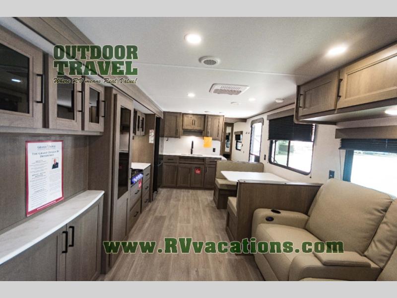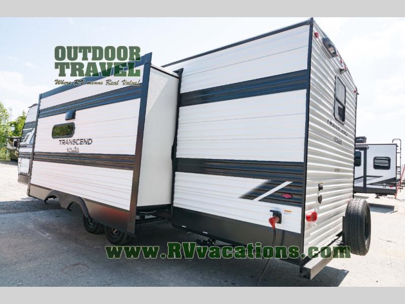 The customer-focused, quality-built Transcend Xplor travel trailers by Grand Design are your ticket to fun and adventure. You will appreciate the power tongue jack when it comes time to set up, as well as the all-in-one utility center and the detachable power cord with an LED light. These models include many outlets throughout, USB ports to charge your gadgets, and a JBL exterior speaker to listen to your favorite tunes. The interior of the Transcend Xplor will have you feeling right at home with upgraded residential furniture, residential countertops, residential cabinet doors, and the list goes on!