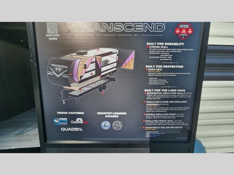 The customer-focused, quality-built Transcend Xplor travel trailers by Grand Design are your ticket to fun and adventure. You will appreciate the power tongue jack when it comes time to set up, as well as the all-in-one utility center and the detachable power cord with an LED light. These models include many outlets throughout, USB ports to charge your gadgets, and a JBL exterior speaker to listen to your favorite tunes. The interior of the Transcend Xplor will have you feeling right at home with upgraded residential furniture, residential countertops, residential cabinet doors, and the list goes on!