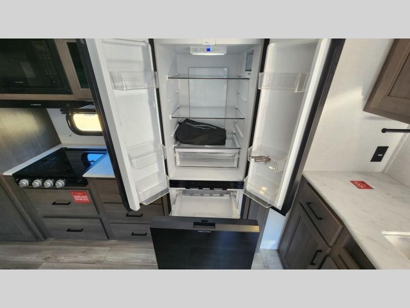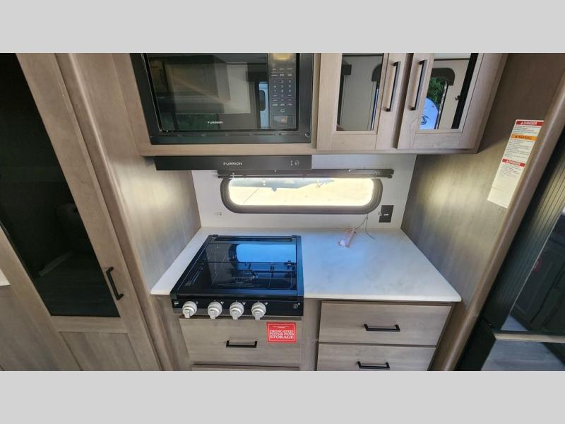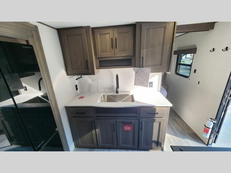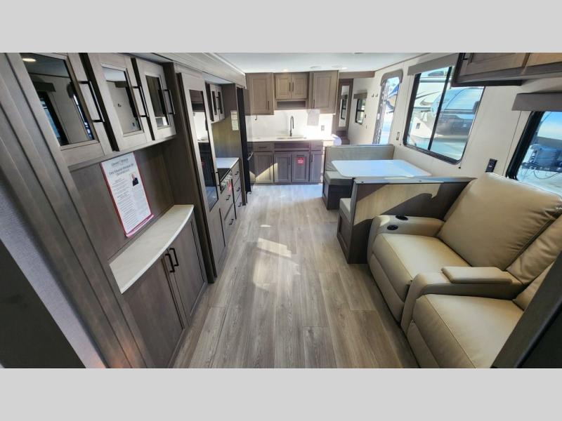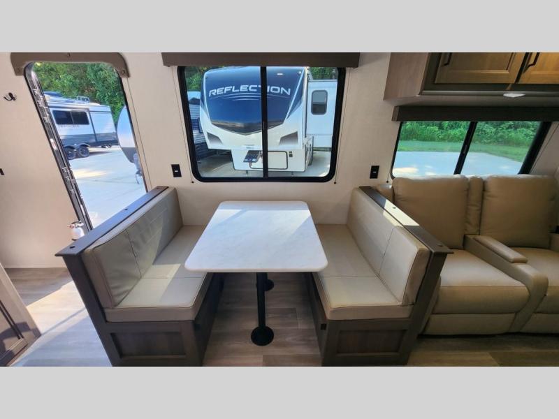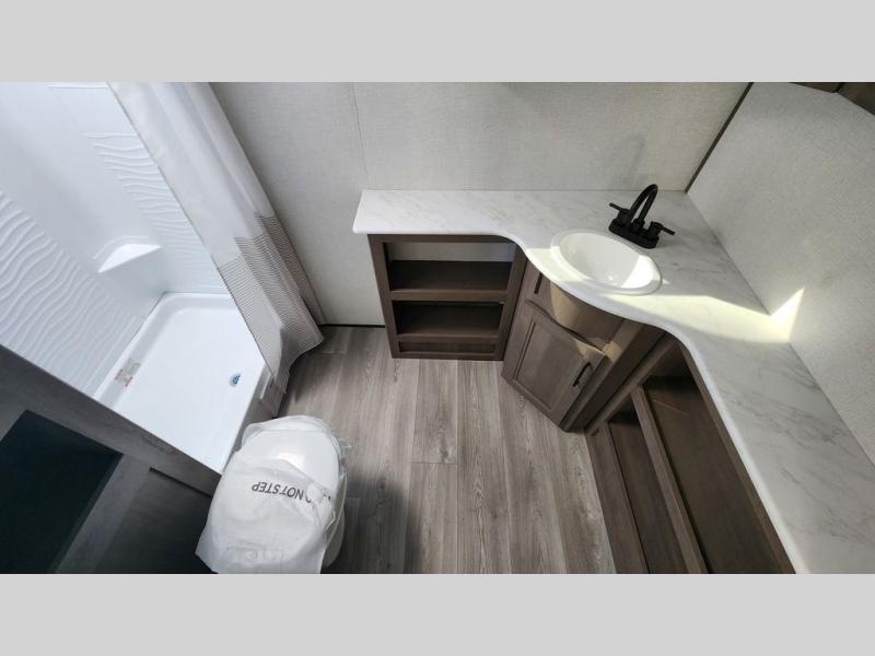 Your search for the perfect couple's trailer is over with this RV in tow! You will enjoy your own private bedroom up front with a queen bed, overhead storage, and TV prep if you choose to bring along your own television. The spacious full rear bath includes a linen closet and a walk-in shower to easily clean up each day. Relax on the 60" sleeper sofa after a long day outdoors, or you can choose the optional theater seating if you don't need additional sleeping space. The booth dinette can also be used for an overnight guest or two little ones. This model also includes plenty of storage space and plenty of counter space to prep and cook at-home meals! Finally relax under the shade of the massive 19' awning.