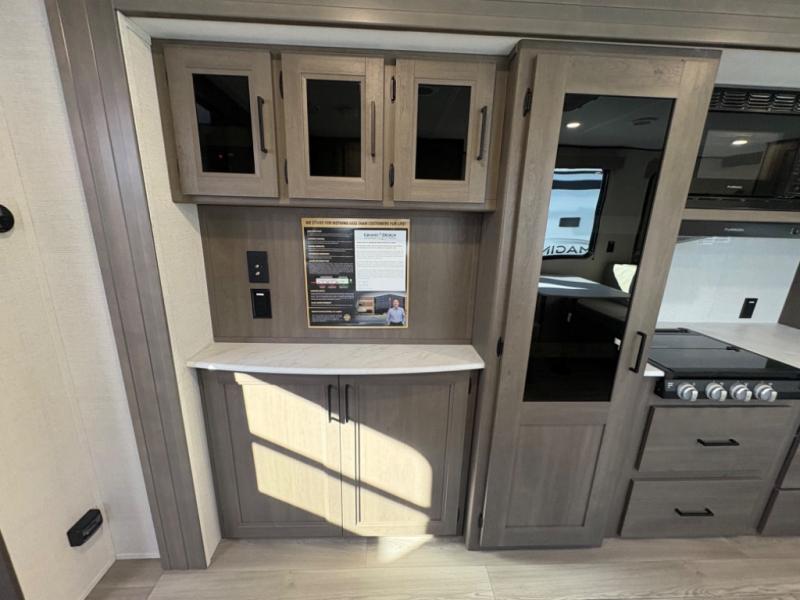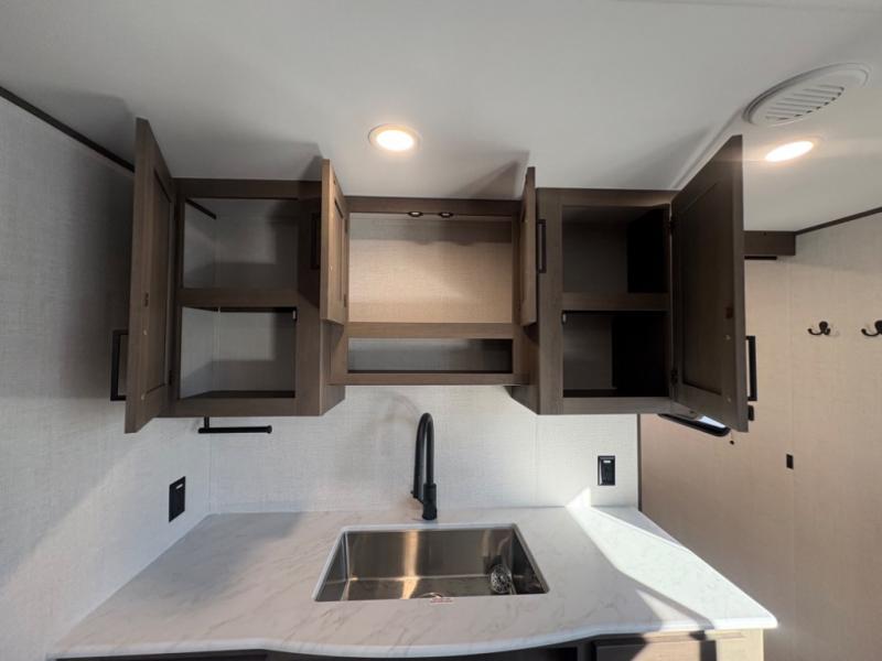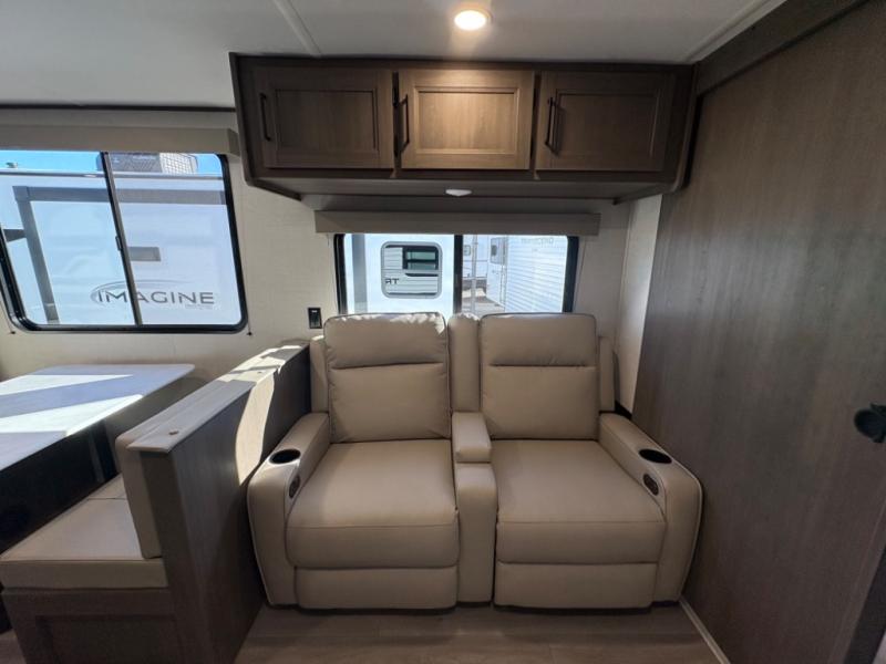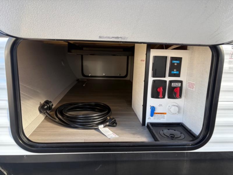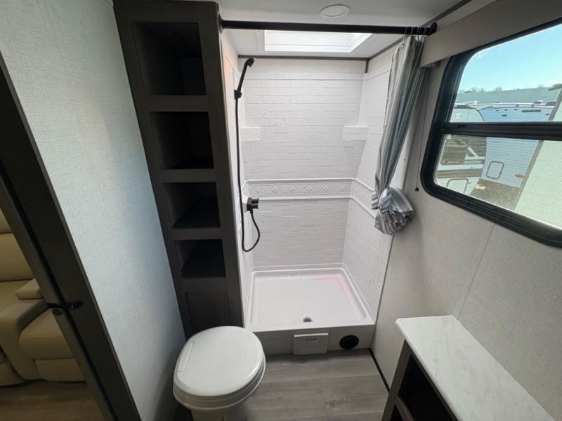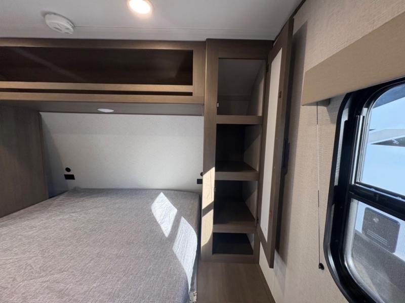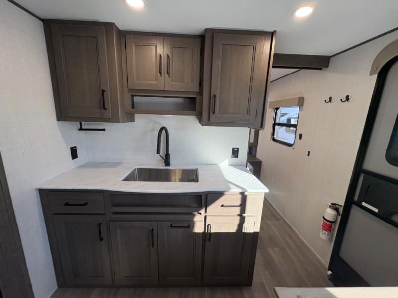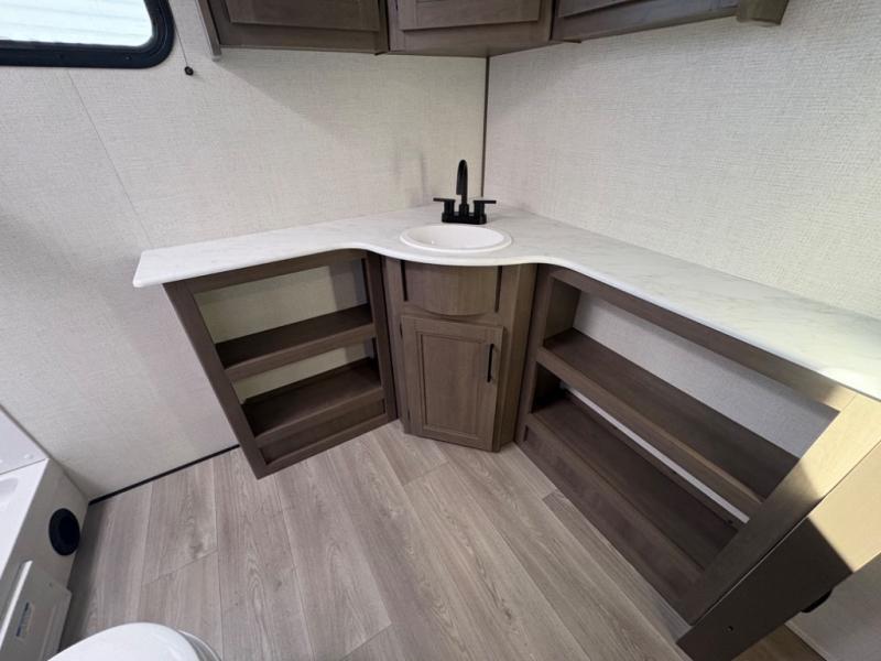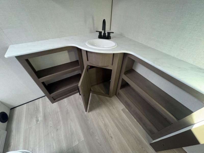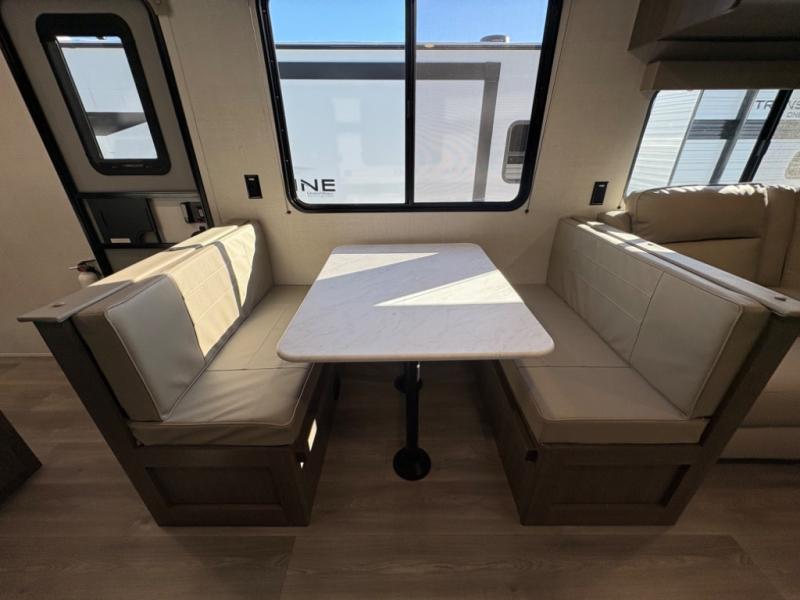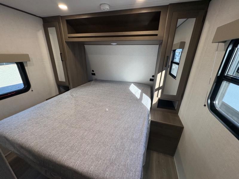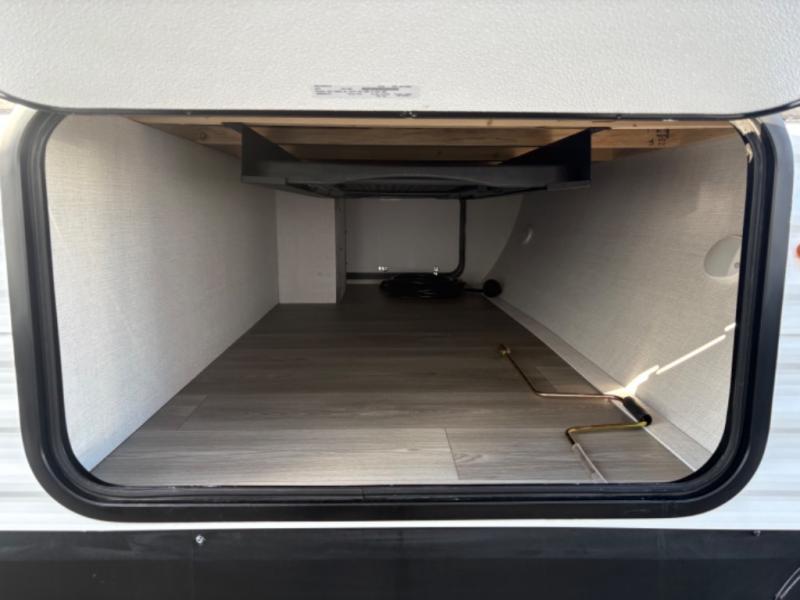 Your search for the perfect couple's trailer is over with this RV in tow! You will enjoy your own private bedroom up front with a queen bed, overhead storage, and TV prep if you choose to bring along your own television. The spacious full rear bath includes a linen closet and a walk-in shower to easily clean up each day. Relax on the 60" sleeper sofa after a long day outdoors, or you can choose the optional theater seating if you don't need additional sleeping space. The booth dinette can also be used for an overnight guest or two little ones. This model also includes plenty of storage space and plenty of counter space to prep and cook at-home meals! Finally relax under the shade of the massive 19' awning.
