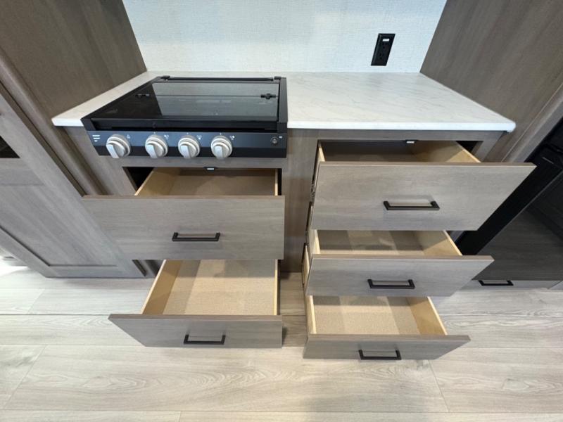 The customer-focused, quality-built Transcend Xplor travel trailers by Grand Design are your ticket to fun and adventure. You will appreciate the power tongue jack when it comes time to set up, as well as the all-in-one utility center and the detachable power cord with an LED light. These models include many outlets throughout, USB ports to charge your gadgets, and a JBL exterior speaker to listen to your favorite tunes. The interior of the Transcend Xplor will have you feeling right at home with upgraded residential furniture, residential countertops, residential cabinet doors, and the list goes on!