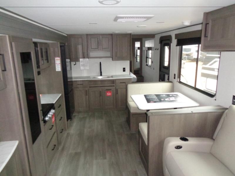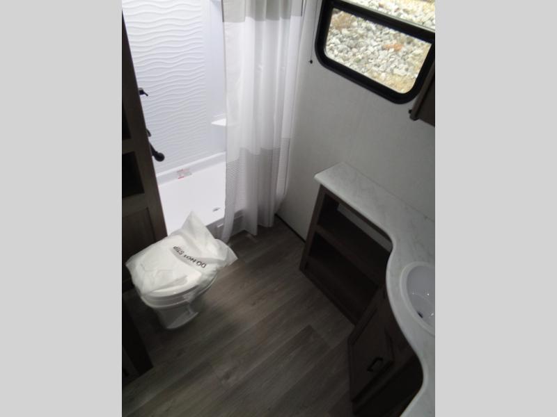 Your search for the perfect couple's trailer is over with this RV in tow! You will enjoy your own private bedroom up front with a queen bed, overhead storage, and TV prep if you choose to bring along your own television. The spacious full rear bath includes a linen closet and a walk-in shower to easily clean up each day. Relax on the 60" sleeper sofa after a long day outdoors, or you can choose the optional theater seating if you don't need additional sleeping space. The booth dinette can also be used for an overnight guest or two little ones. This model also includes plenty of storage space and plenty of counter space to prep and cook at-home meals! Finally relax under the shade of the massive 19' awning.