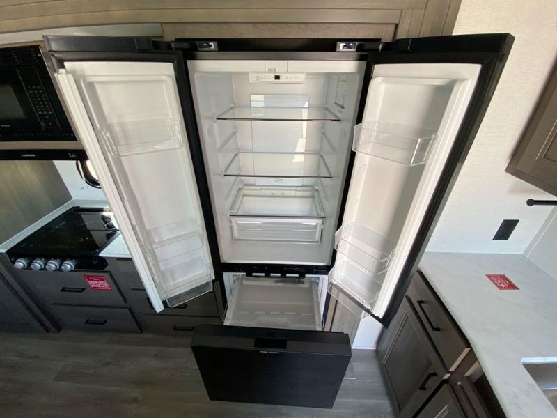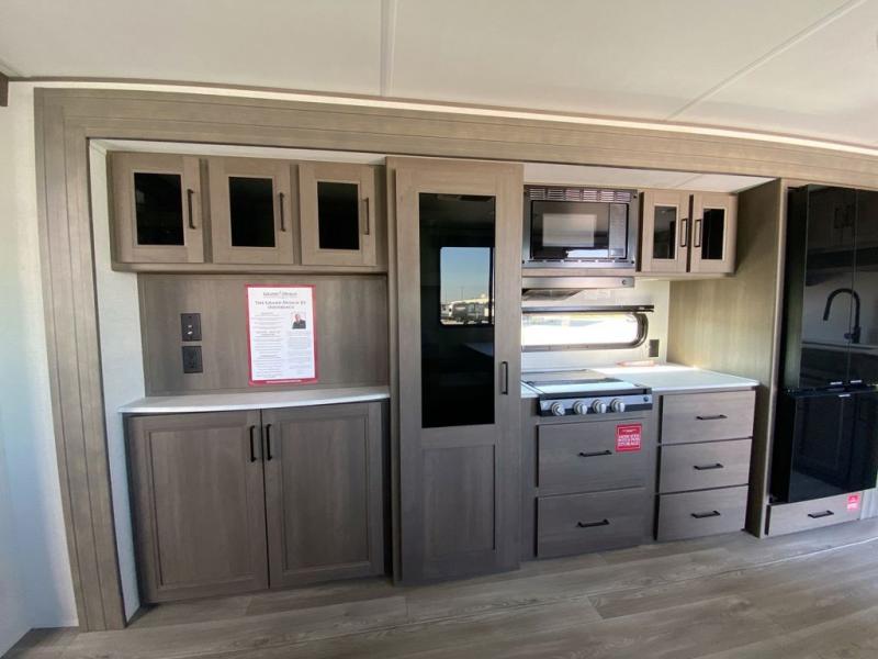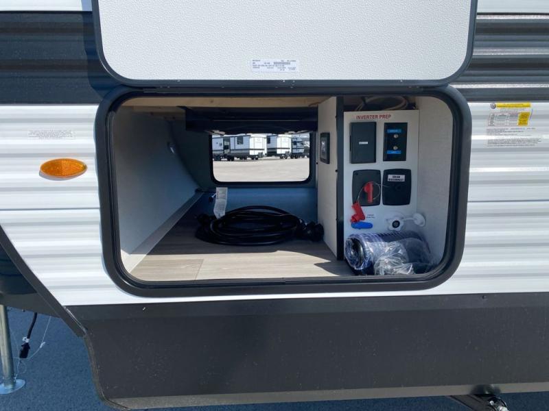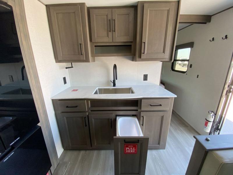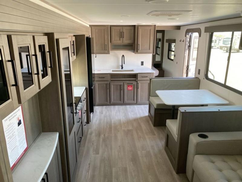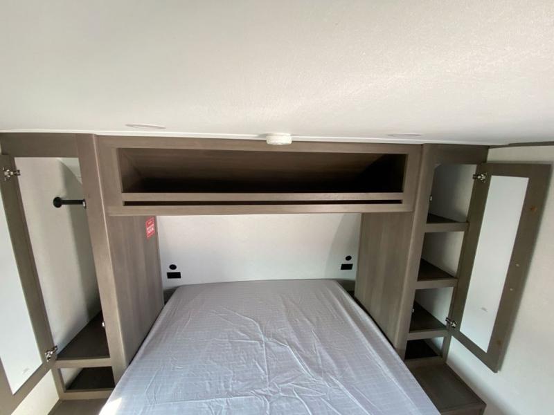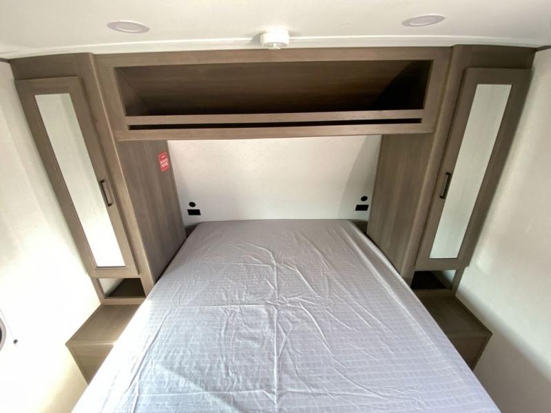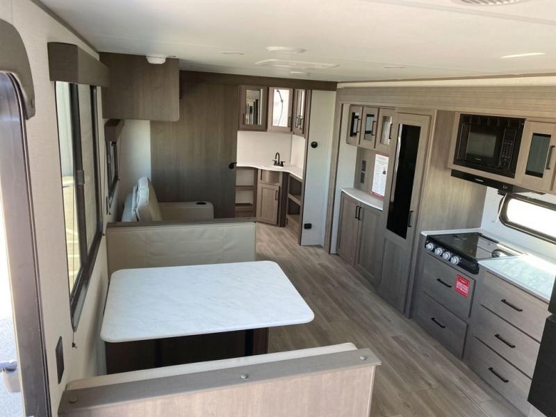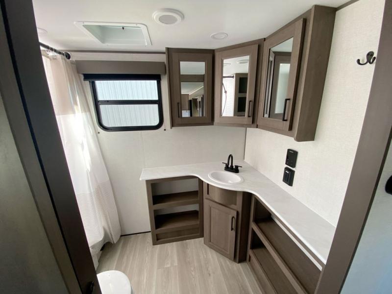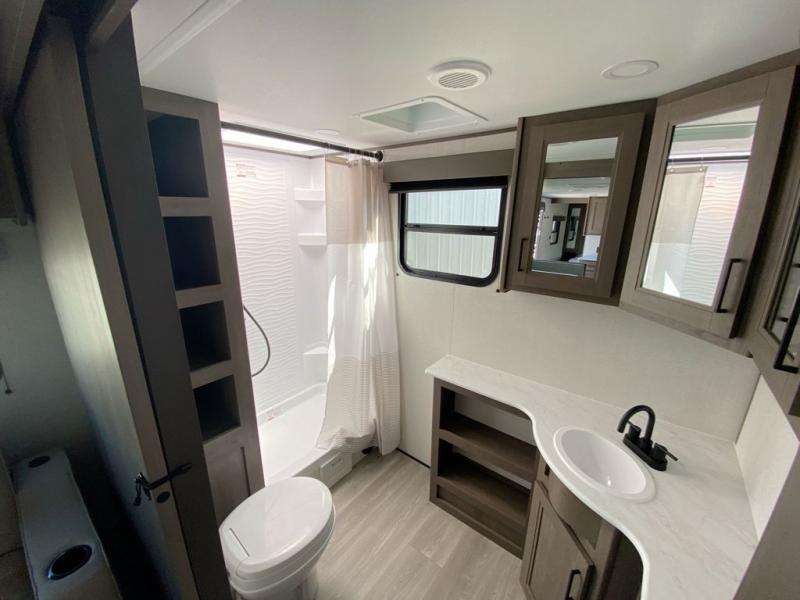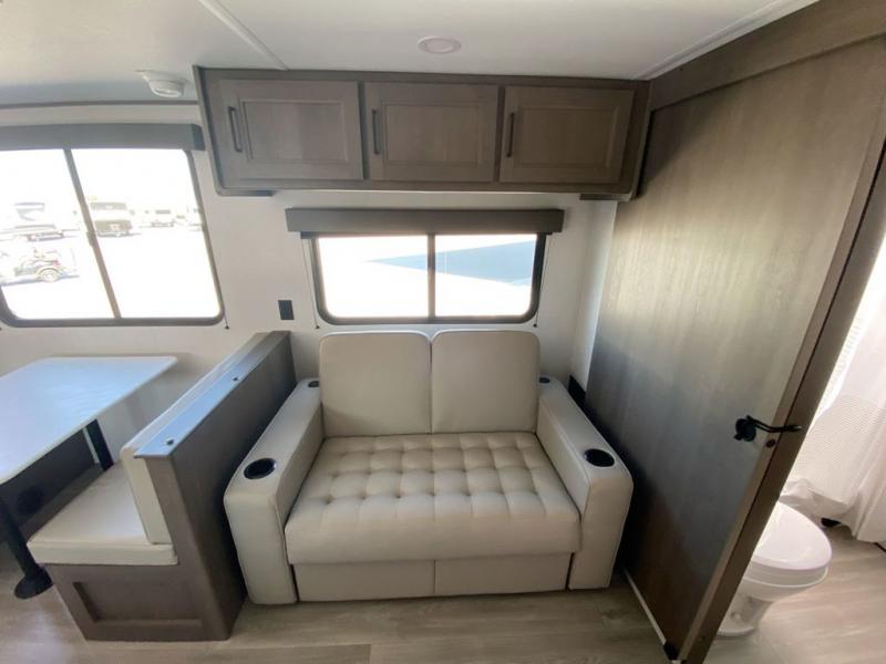 Your search for the perfect couple's trailer is over with this RV in tow! You will enjoy your own private bedroom up front with a queen bed, overhead storage, and TV prep if you choose to bring along your own television. The spacious full rear bath includes a linen closet and a walk-in shower to easily clean up each day. Relax on the 60" sleeper sofa after a long day outdoors, or you can choose the optional theater seating if you don't need additional sleeping space. The booth dinette can also be used for an overnight guest or two little ones. This model also includes plenty of storage space and plenty of counter space to prep and cook at-home meals! Finally relax under the shade of the massive 19' awning.