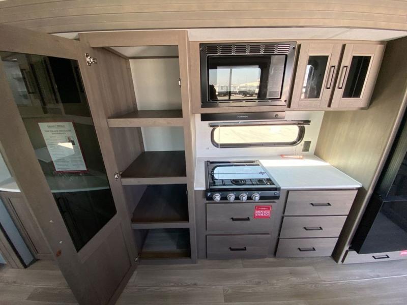 The customer-focused, quality-built Transcend Xplor travel trailers by Grand Design are your ticket to fun and adventure. You will appreciate the power tongue jack when it comes time to set up, as well as the all-in-one utility center and the detachable power cord with an LED light. These models include many outlets throughout, USB ports to charge your gadgets, and a JBL exterior speaker to listen to your favorite tunes. The interior of the Transcend Xplor will have you feeling right at home with upgraded residential furniture, residential countertops, residential cabinet doors, and the list goes on!