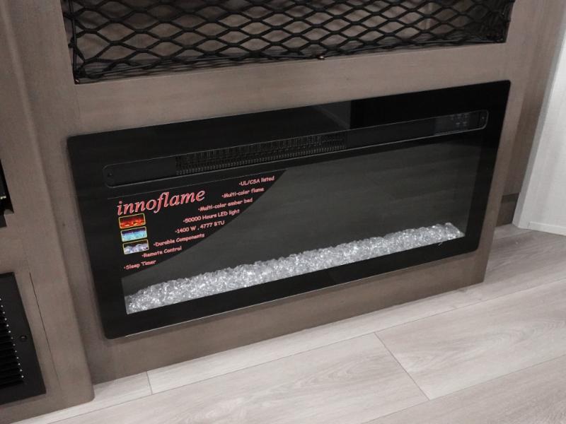 Get ready to take your travels to new heights with our incredible luxury travel trailer! The front bedroom has a queen bed, wardrobe, and overhead cabinets for all your favorite belongings, the perfect place to relax and recharge after a long day of adventure. The living room/kitchen combined area is equipped with a U-shaped dinette, three-burner cooktop, microwave, refrigerator, pantry, and 62” theater seating. Perfect for cooking up your favorite meals, entertaining friends and family, or simply relaxing and enjoying the comforts of home. The full bathroom is spacious and complete with a linen closet for added convenience. And with double-sized bunk beds featuring curtains and under-bunk storage, the kids will have their cozy retreat. But the adventure doesn't stop there! Outside, you'll find an exterior griddle with a 1.7 refrigerator, perfect for cooking up a storm in the great outdoors. And with a massive 19’ awning, you'll have plenty of shade and protection from the elements, plus, with two entry/exit doors and pass-through storage, you'll have easy access to the trailer and all your gear.