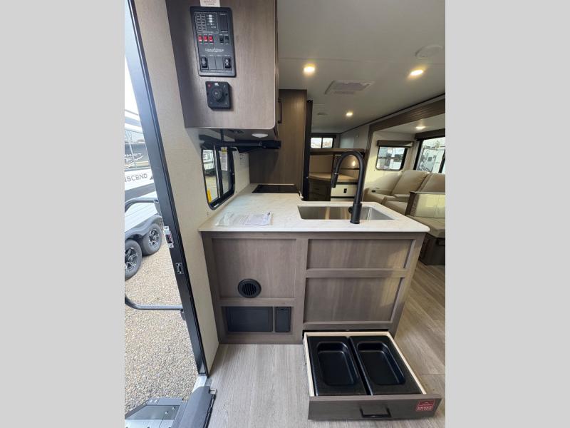 The customer-focused, quality-built Transcend Xplor travel trailers by Grand Design are your ticket to fun and adventure. You will appreciate the power tongue jack when it comes time to set up, as well as the all-in-one utility center and the detachable power cord with an LED light. These models include many outlets throughout, USB ports to charge your gadgets, and a JBL exterior speaker to listen to your favorite tunes. The interior of the Transcend Xplor will have you feeling right at home with upgraded residential furniture, residential countertops, residential cabinet doors, and the list goes on!
