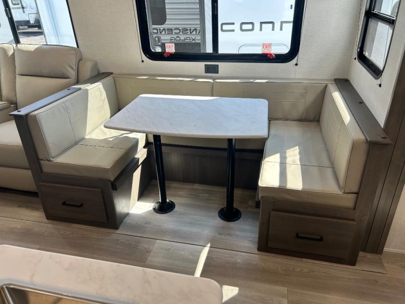 The customer-focused, quality-built Transcend Xplor travel trailers by Grand Design are your ticket to fun and adventure. You will appreciate the power tongue jack when it comes time to set up, as well as the all-in-one utility center and the detachable power cord with an LED light. These models include many outlets throughout, USB ports to charge your gadgets, and a JBL exterior speaker to listen to your favorite tunes. The interior of the Transcend Xplor will have you feeling right at home with upgraded residential furniture, residential countertops, residential cabinet doors, and the list goes on!
