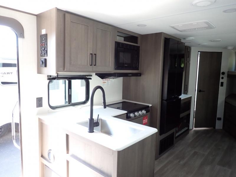 The customer-focused, quality-built Transcend Xplor travel trailers by Grand Design are your ticket to fun and adventure. You will appreciate the power tongue jack when it comes time to set up, as well as the all-in-one utility center and the detachable power cord with an LED light. These models include many outlets throughout, USB ports to charge your gadgets, and a JBL exterior speaker to listen to your favorite tunes. The interior of the Transcend Xplor will have you feeling right at home with upgraded residential furniture, residential countertops, residential cabinet doors, and the list goes on!