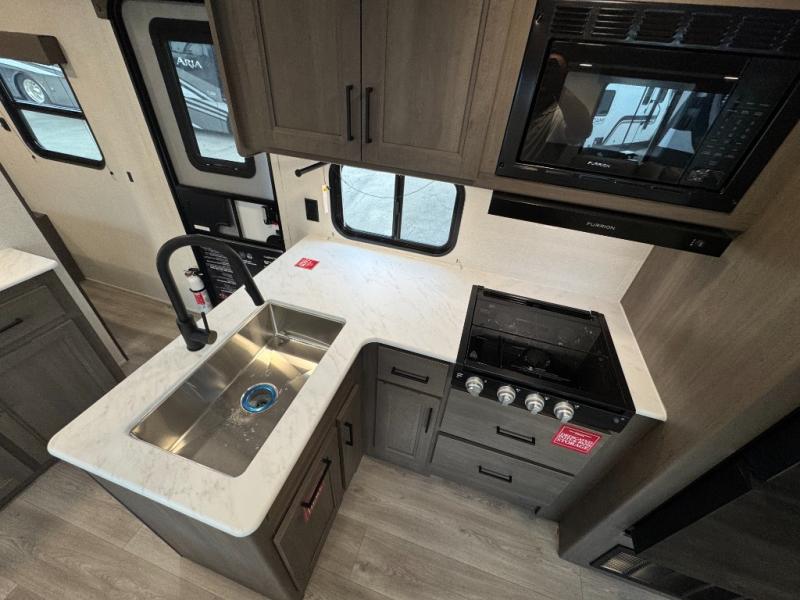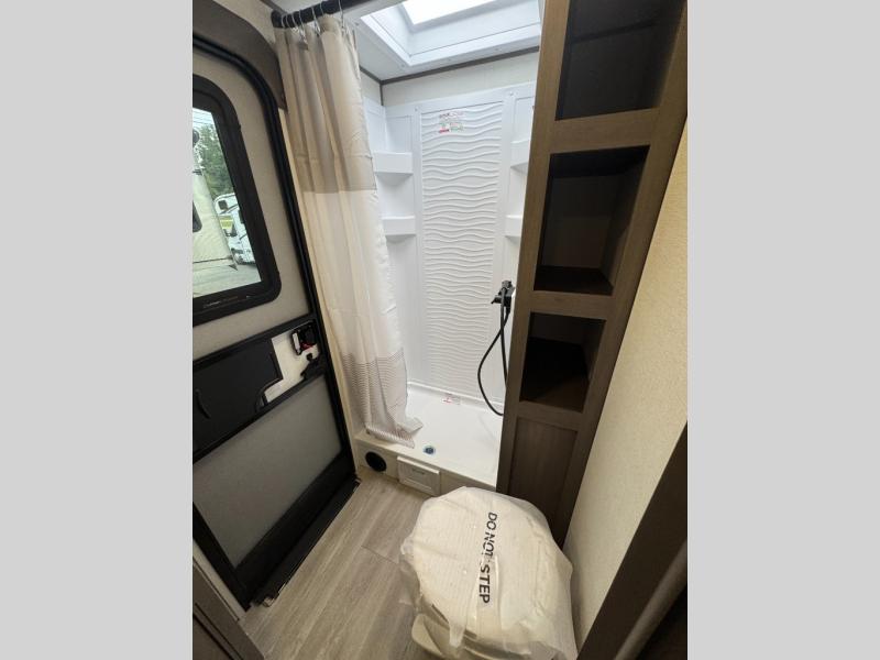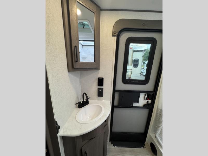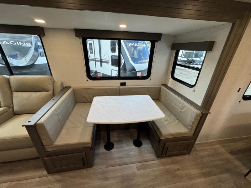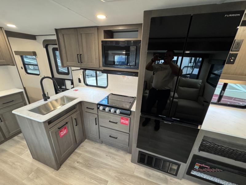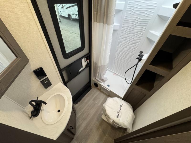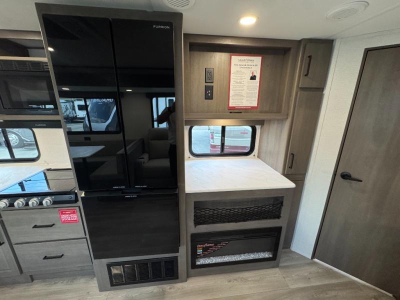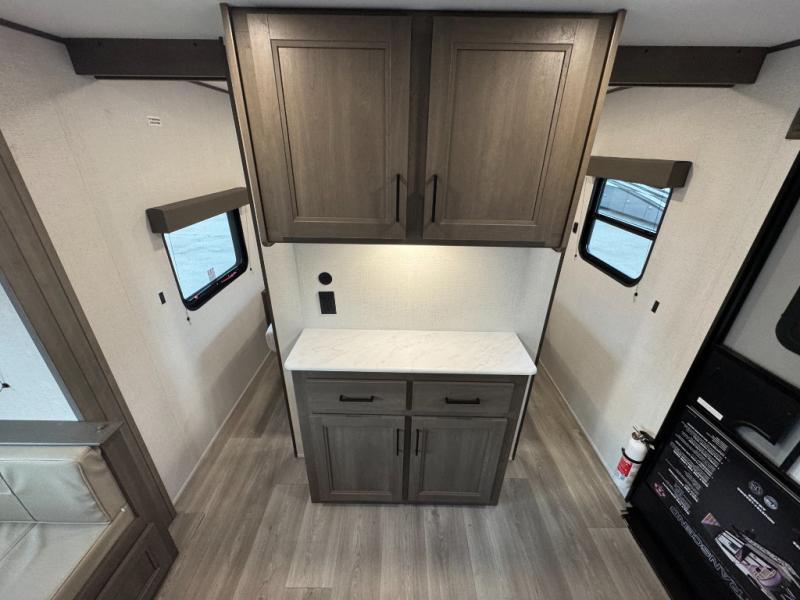 Get ready to take your travels to new heights with our incredible luxury travel trailer! The front bedroom has a queen bed, wardrobe, and overhead cabinets for all your favorite belongings, the perfect place to relax and recharge after a long day of adventure. The living room/kitchen combined area is equipped with a U-shaped dinette, three-burner cooktop, microwave, refrigerator, pantry, and 62” theater seating. Perfect for cooking up your favorite meals, entertaining friends and family, or simply relaxing and enjoying the comforts of home. The full bathroom is spacious and complete with a linen closet for added convenience. And with double-sized bunk beds featuring curtains and under-bunk storage, the kids will have their cozy retreat. But the adventure doesn't stop there! Outside, you'll find an exterior griddle with a 1.7 refrigerator, perfect for cooking up a storm in the great outdoors. And with a massive 19’ awning, you'll have plenty of shade and protection from the elements, plus, with two entry/exit doors and pass-through storage, you'll have easy access to the trailer and all your gear.