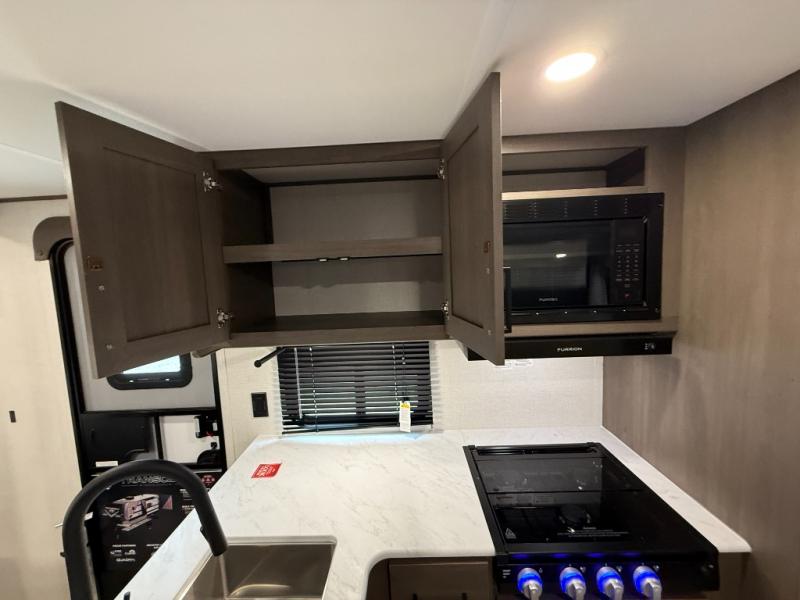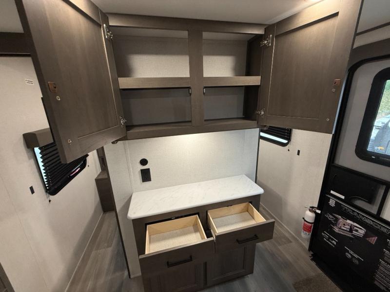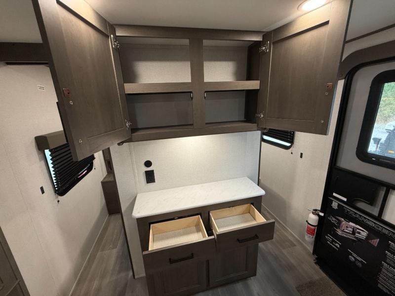 The customer-focused, quality-built Transcend Xplor travel trailers by Grand Design are your ticket to fun and adventure. You will appreciate the power tongue jack when it comes time to set up, as well as the all-in-one utility center and the detachable power cord with an LED light. These models include many outlets throughout, USB ports to charge your gadgets, and a JBL exterior speaker to listen to your favorite tunes. The interior of the Transcend Xplor will have you feeling right at home with upgraded residential furniture, residential countertops, residential cabinet doors, and the list goes on!