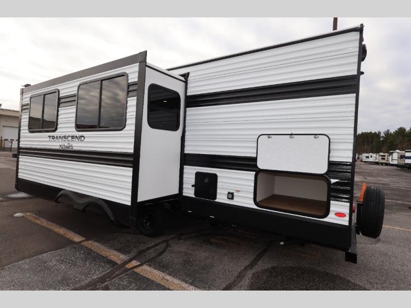 The customer-focused, quality-built Transcend Xplor travel trailers by Grand Design are your ticket to fun and adventure. You will appreciate the power tongue jack when it comes time to set up, as well as the all-in-one utility center and the detachable power cord with an LED light. These models include many outlets throughout, USB ports to charge your gadgets, and a JBL exterior speaker to listen to your favorite tunes. The interior of the Transcend Xplor will have you feeling right at home with upgraded residential furniture, residential countertops, residential cabinet doors, and the list goes on!
