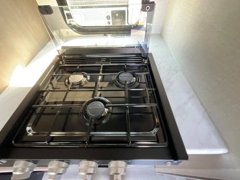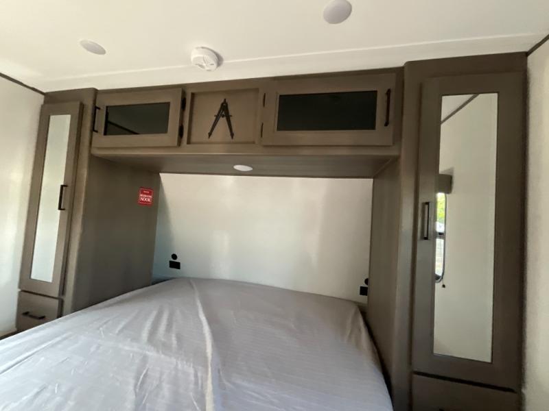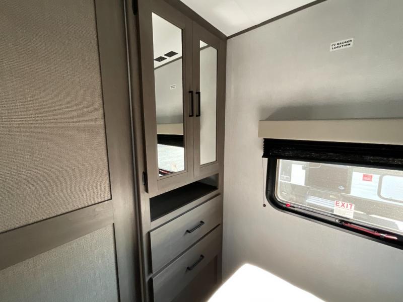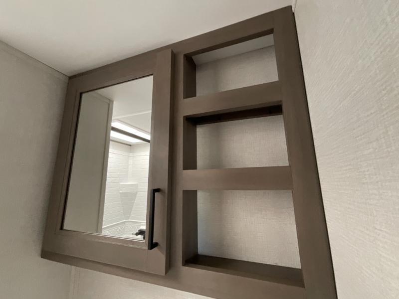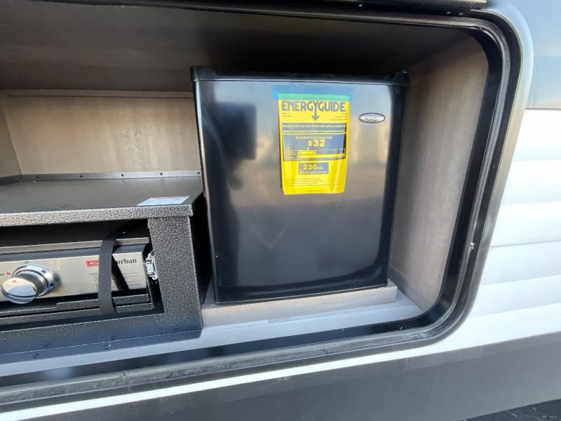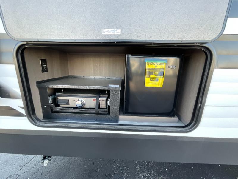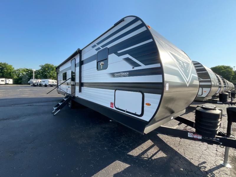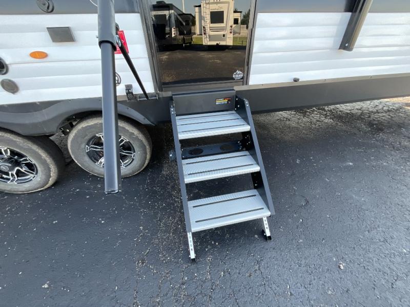 Outside, the 295QBT continues to impress with features like an oversized pass-through storage compartment, solid entry steps, a power awning, and an optional outdoor kitchen perfect for cooking in the fresh air. Grand Design’s insulation, high-quality materials, and strict quality standards give this trailer the durability and performance needed for extended-season camping and frequent travel.