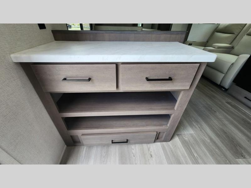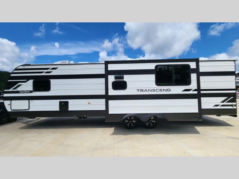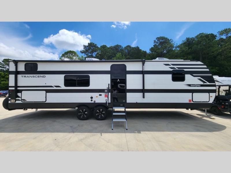 With any Transcend travel trailer by Grand Design, you will enjoy upscale appointments and convenient amenities to make each camping experience one to remember! The Quad Seal technology, residential insulated walls, plus heated and enclosed underbelly with suspended tanks make these units solid and durable. There is a black automotive glass door outside, along with a Safe-T-Rail assist on the main entry door, backup camera prep, and a universal docking station. JBL interior and exterior speakers plus a JBL head unit will let you listen to your favorite tunes as you visit under the power awning with LED strip lights. Inside, you'll enjoy multiple outlets to keep your gadgets charged, thermoformed and seamless countertops, and a 6' 6" interior height so you won't feel closed in. The Solar Prep Package will allow you to enjoy off-grid capabilities with a 200W solar panel, which is wired for up to 600W, a 30 AMP Bluetooth solar controller, a 2000W inverter prep, and more!