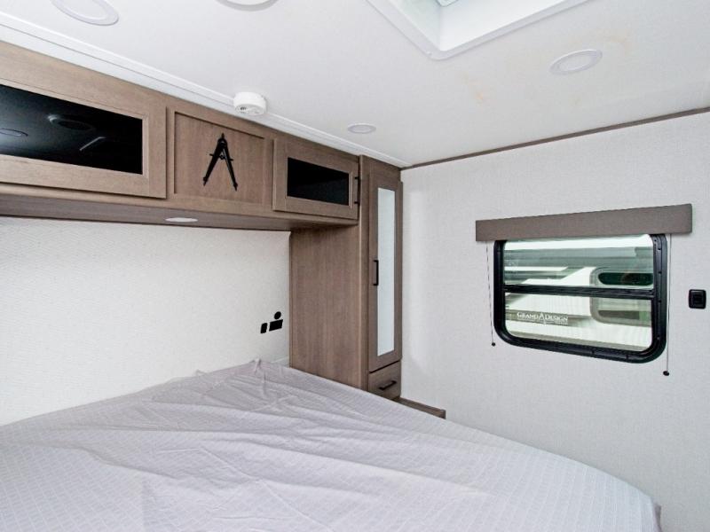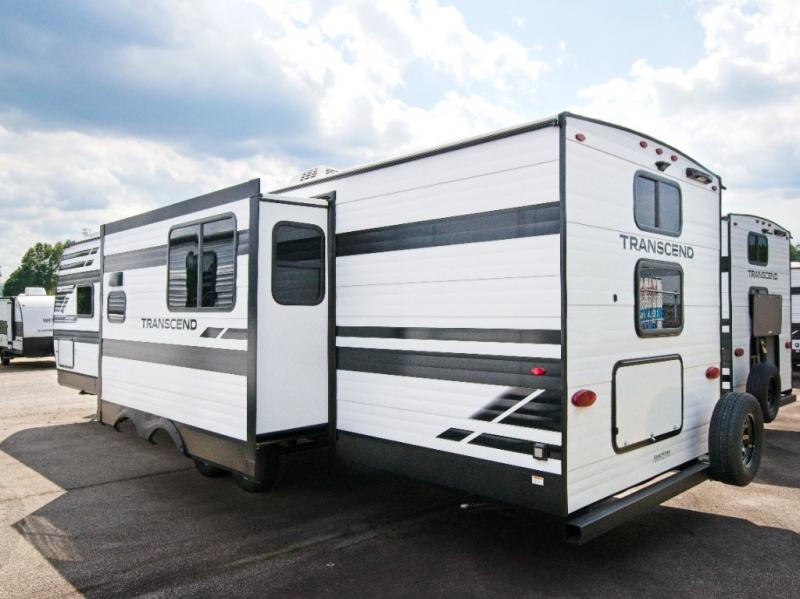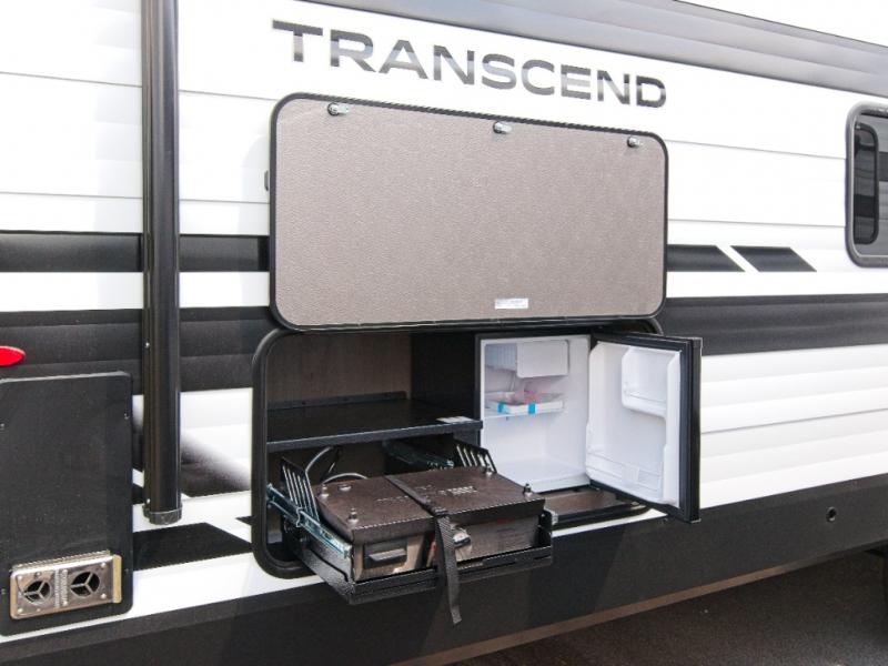 Explore the Grand Design Transcend 295QBT—where a private rear bunkhouse and outdoor kitchen under a 20' power awning transform family getaways into unforgettable adventures.