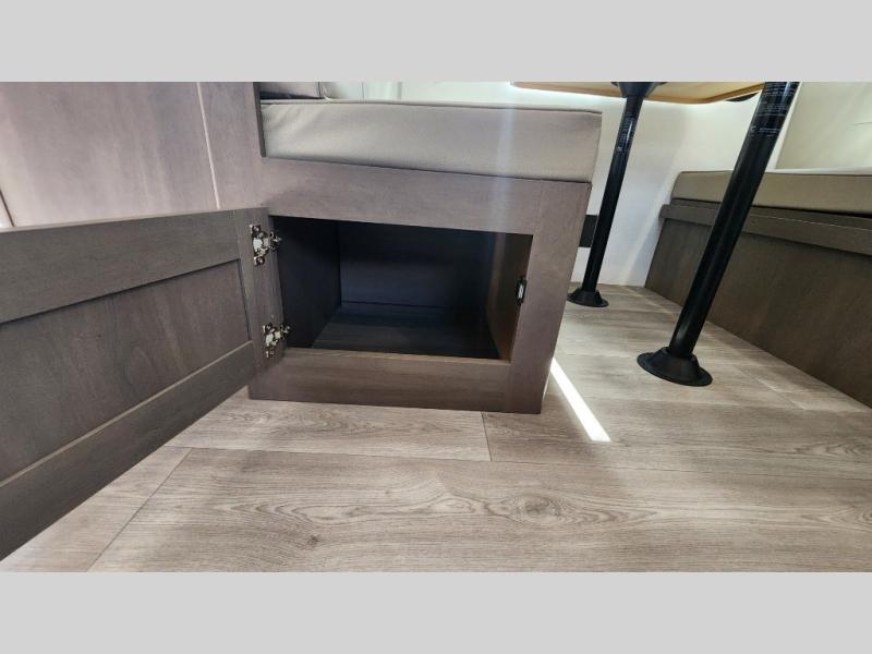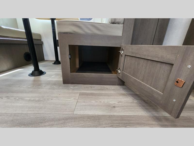 - Spacious Living Area – Oversized booth dinette and jackknife sofa for dining, relaxing, and additional sleeping