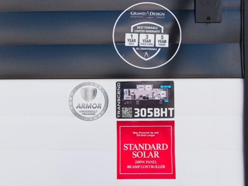 With Quad Seal technology, residential insulated walls, and a heated enclosed underbelly, the Transcend is engineered for durability in any season. The Solar Prep Package includes a 200W solar panel (expandable to 600W), a 30 AMP Bluetooth solar controller, and inverter prep—giving you the freedom to camp off-grid with confidence.