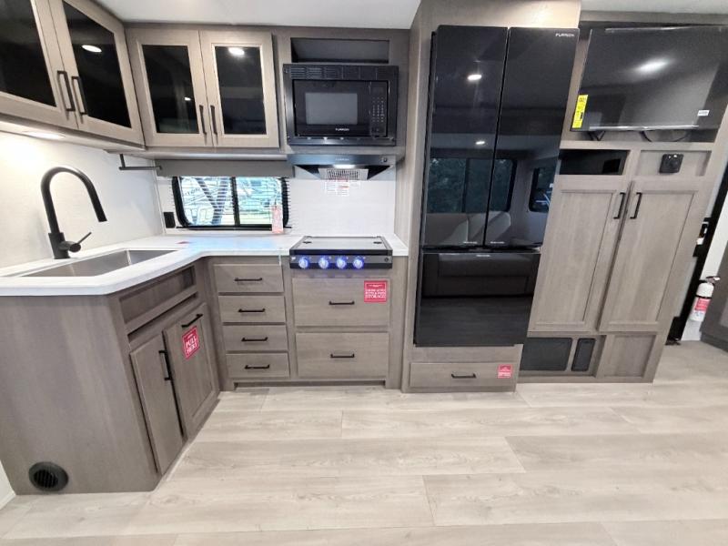 Prepare meals with ease using the fully equipped interior kitchen, or take the cooking outdoors with the exterior griddle and 1.7 cu. ft. refrigerator—perfect for quick snacks and cold drinks under the awning.